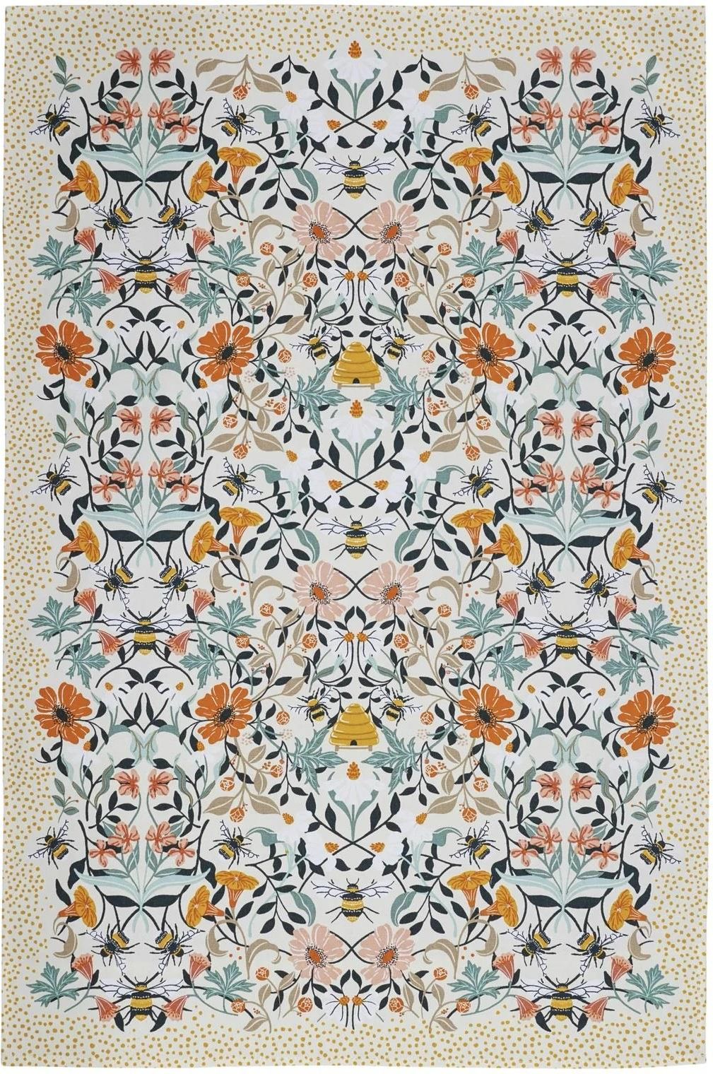 Kuchenna ściereczka Bee Bloom. Posiada nadruk pszczół, który wciąż jest popularnym trendem. Wijące się liście przeplatają się z pąkami kwiatów, podczas gdy pszczoły brzęczą leniwie Kwiaty w kolorze miodu i pomarańczy mieszają się z odcieniami miętowej zieleni, a liście w kolorze czerni stanowią …