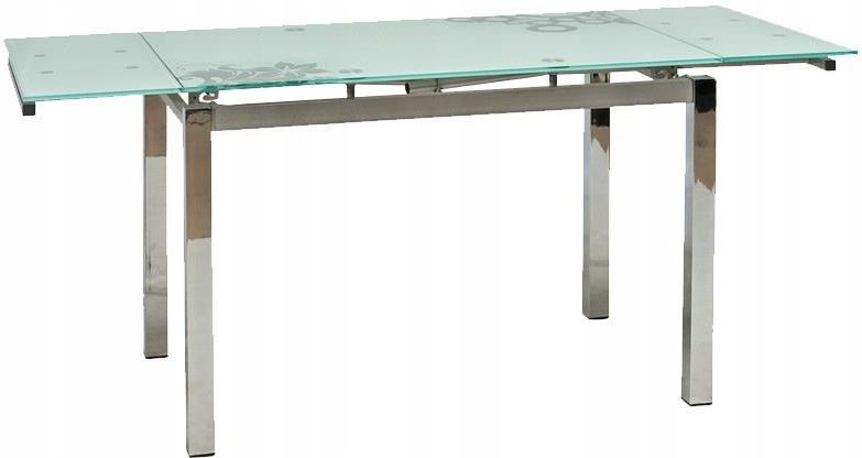 Stół rozkładany GD-017 biały Signal Stół GD-017 o prostym, acz efektownym wyglądzie. Blat wykonany ze szkła hartowanego posiada modny wzór. Na jednym z rogów znajdują się delikatne okręgi, z przeciwnej strony widoczny jest motyw kwiatowy. Stół z białym blatem doda do wnętrza poczucie elegancji i …
