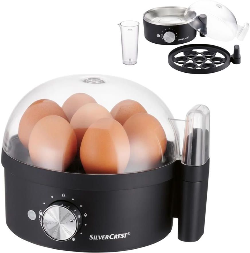 Jajowar Silvercrest SEK 450 A1 czarny Jajowar z tworzywa sztucznego z elektronicznym nadzorem czasu gotowania Gotowanie jajek o różnych stopniach twardości w jednym procesie gotowania Praktyczne pokrętło do ustawiania stopni twardości (miękko, średnio, twardo) Cechy i funkcje Idealnie ugotowane …