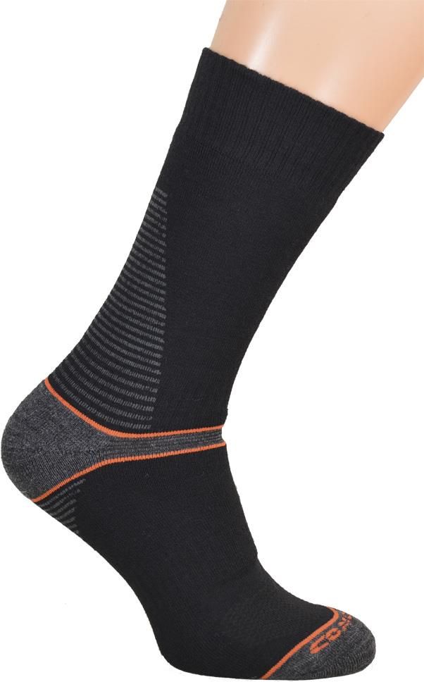 Ciepłe Skarpety Trekkingowe firmy Comodo TRE8 z 50% zawartością wełny MERINO. Niezwykle wytrzymałe skarpety trekkingowe. Idealnie sprawdzą się podczas pieszych wędrówek w chłodne i mroźne dni. Długość: STANDARD (do połowy łydki), Grubość: MEDIUM (standardowe). Właściwości i cechy produktu Wzmocnienie frottą niemal całej skarpety zapewnia utrzymanie ciepła, Płaskie szwy w okolicach palców zwiększają komfort użytkowania, Nowoczesne połączenie struktur materiałów termoaktywnych zapewnia idealne odprowadzenie wilgoci od skóry, Ściągacz w śródstopiu zapobiega zsuwaniu się skarpety, Bardzo wytrzymałe, odporne na przetarcia, Wysokość do połowy łydki, Doskonałe regulują wilgoć i temperaturę stóp, Antybakteryjne. Do ich produkcji tych skarpet zastosowano nowoczesne włókno CLIMAYARN. Jest to połączenie wełny Merino z Polycolonem (polipropylenem). Materiał ten ociepla zimą, a w czasie upałów zapobiega przegrzaniu się stóp. Dodatkowo jest on wyjątkowo odporny na przetarcia. Skład 50% wełna Merino, 20% Polycolon, 15% Poliamid, 10% Polipropylen, 5% Elastan. Jak dbać o produkt? Pranie w temperaturze nieprzekraczającej 30°C, Nie prasować, Nie wybielać, Nie czyścić chemicznie, Nie suszyć w suszarce bębnowej.