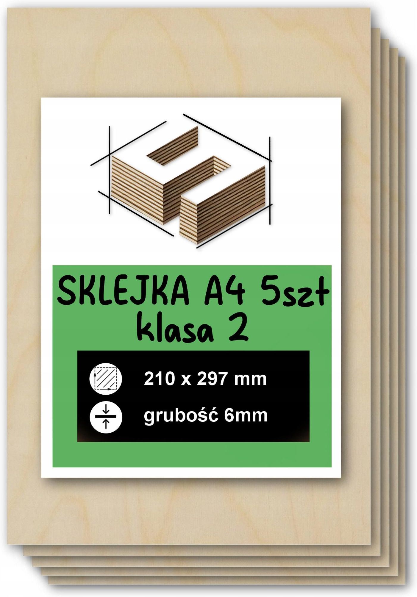 Sklejkowo Sklejka A4 6mm Formatka Do Lasera Cnc Grawer 21x29.7cm 210x297mm 5szt. Kl2 Kraków