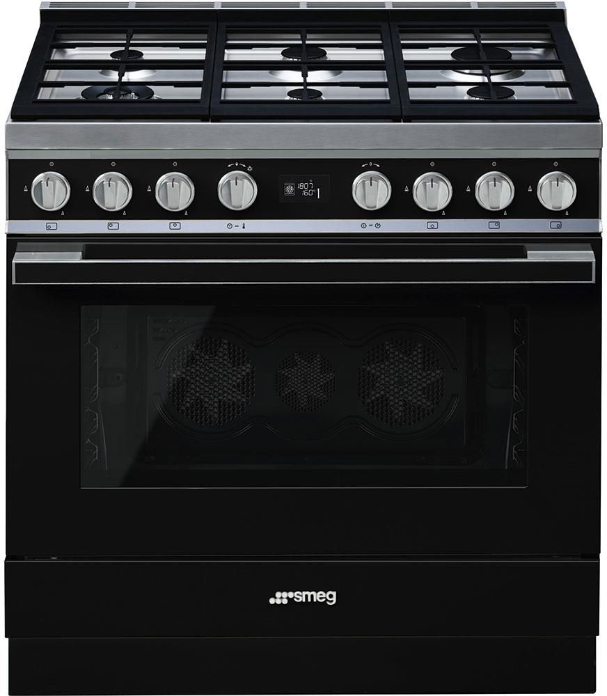 KUCHNIA Z PŁYTĄ GAZOWĄ  SMEG CPF9GPBL Rodzina produktów Kuchnia wolnostojąca Linia wzornicza Portofino Rodzaj płyty Gaz Klasa efektywności energetycznej A+ Rozmiar 90x60 cm Kolor Czarny Rodzaj piekarnika głównego Termoobieg @media screen and (max-width: …