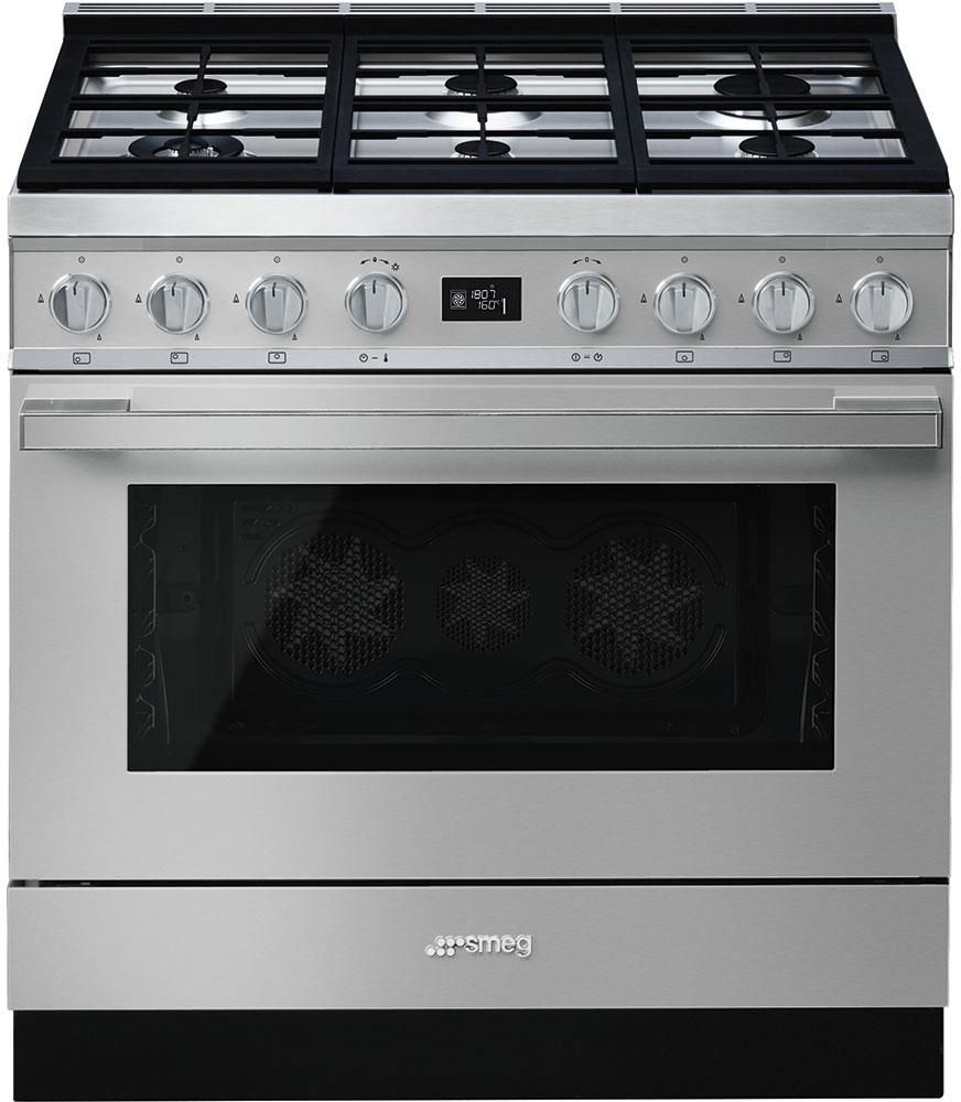 KUCHNIA Z PŁYTĄ GAZOWĄ  SMEG CPF9GPX Rodzina produktów Kuchnia wolnostojąca Linia wzornicza Portofino Rodzaj płyty Gaz Klasa efektywności energetycznej A+ Rozmiar 90x60 cm Kolor Stal nierdzewna Rodzaj piekarnika głównego Termoobieg @media screen and (max-width: …