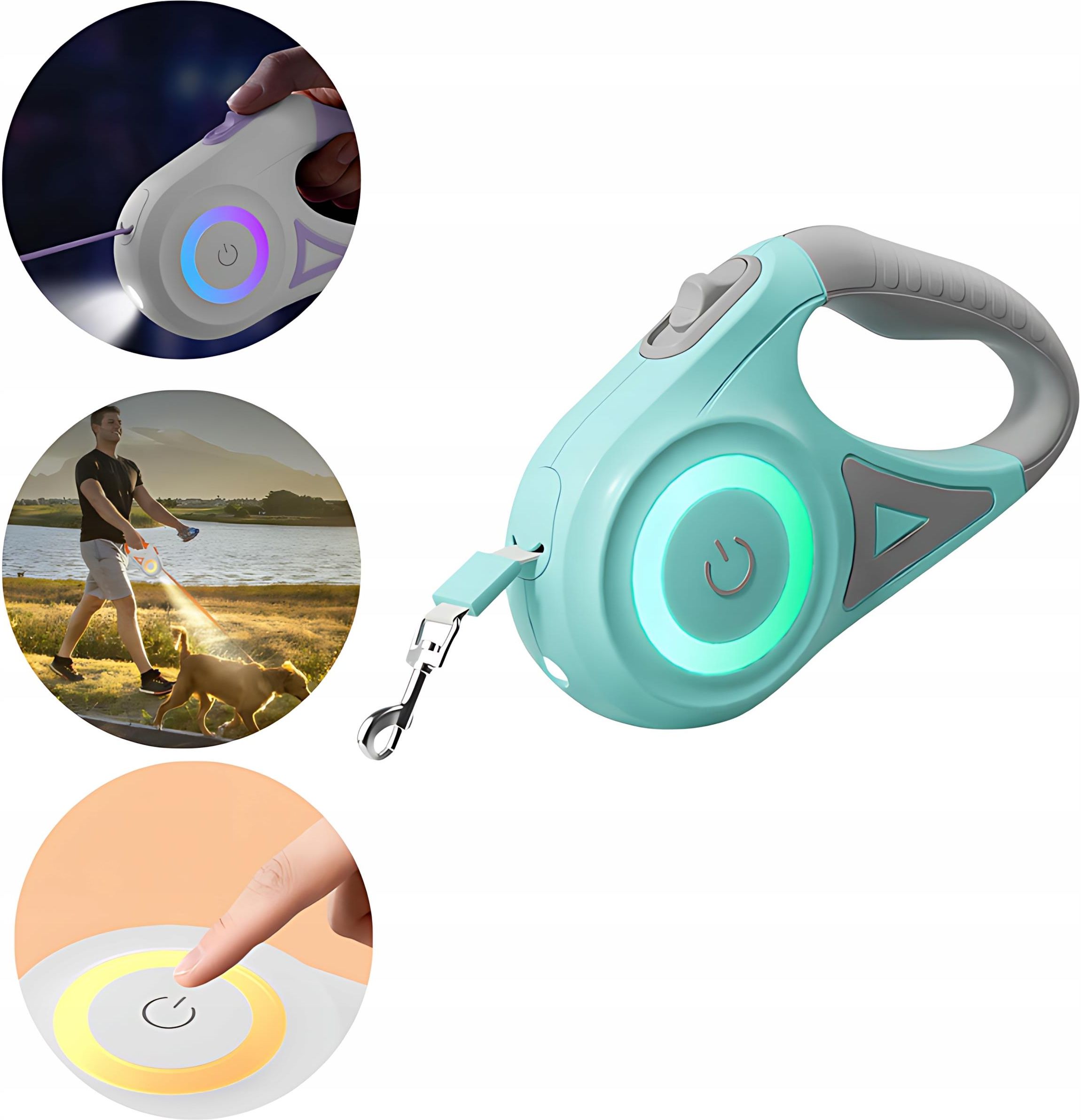 Smycz Automatyczna Dla Psa Z Latarką Led Rojeco 5m Zielona Z Blokadą Rgb Praktyczna smycz Zadbaj o bezpieczeństwo zarówno swoje, jak i swojego ukochanego pupila podczas wieczornych spacerów. Automatyczna smycz Rojeco o długości 5 m wyposażona jest w ergonomiczny uchwyt oraz niezawodną latarkę LED i podświetlenie RGB. Wyróżnia ją solidna i odporna na uszkodzenia konstrukcja. Nie jest też podatna na plątanie się. Dzięki niej możesz wyprowadzać psa lub kota także w niekorzystnych warunkach oświetleniowych, mając pewność, że uczestnicy ruchu drogowego zauważą Waszą obecność. Produkt jest odpowiedni dla zwierząt, których waga nie przekracza 35 kg. Specyfikacja Producent: Rojeco Model: RQYS-04-green Materiał: ABS / TPR / platerowany metal / nylon Kolor: zielony Długość: 5 m Waga: 314 g Wymiary: 18.5 x 11.5 cm Przeznaczenie: zwierzęta, których waga nie przekracza 35 kg Zalety Latarka LED: Wbudowana latarka LED zwiększa widoczność na drodze i pozwala unikać potencjalnych przeszkód. Dzięki niej zawsze będziesz mógł zachować ostrożność. Wytrzymałość: Konstrukcja smyczy jest solidna i odporna na uszkodzenia, co sprawia, że jest odpowiednia dla zwierząt o wadze do 35 kg. Ergonomiczny uchwyt: Wykonany z antypoślizgowego materiału TPR, co zwiększa komfort użytkowania. Podświetlenie RGB Smycz Rojeco oferuje dwustronny pierścień świetlny RGB, dzięki któremu możesz wyprowadzać swojego pupila w niekorzystnych warunkach oświetleniowych bez obaw o bezpieczeństwo. Do Twojej dyspozycji będzie aż 5 kolorów. Latarka LED Z Rojeco zwiększysz swoją widoczność na drodze. Automatyczna smycz została wyposażona we wbudowaną latarkę LED, dzięki której nie przeoczysz niczego istotnego i zachowasz ostrożność w razie potrzeby. Intuicyjna obsługa Dzięki praktycznemu przyciskowi obsługa smyczy Rojeco jest wygodna i intuicyjna. Pierwsze wciśnięcie przycisku pozwala uruchomić latarkę LED. Jeżeli chcesz włączyć podświetlenie RGB, naciśnij przycisk po raz kolejny. Trzecie naciśnięcie sprawia, że korzystać możesz zarówno z latarki, jak i z podświetlenia. Natomiast czwarte naciśnięcie wyłącza obydwie funkcje. Z kolei za pomocą przełącznika możesz wygodnie kontrolować długość smyczy. Przemyślana konstrukcja Smycz obraca się w zakresie 360°, jest niepodatna na plątanie się i odporna na uszkodzenia. Otwór zwijający w kształcie litery U pozwala kontrolować pupila pod dowolnym kątem. Dzięki temu możesz swobodnie wyprowadzać swojego futrzastego przyjaciela, wiedząc, że nie oddali się od Ciebie na niebezpieczną odległość. Ponadto ergonomiczny uchwyt wykonany został z antypoślizgowego materiału TPR, co zwiększa wygodę użytkowania. Aby zasilić urządzenie, potrzebne są dwie baterie AAA (do zakupu oddzielnie).