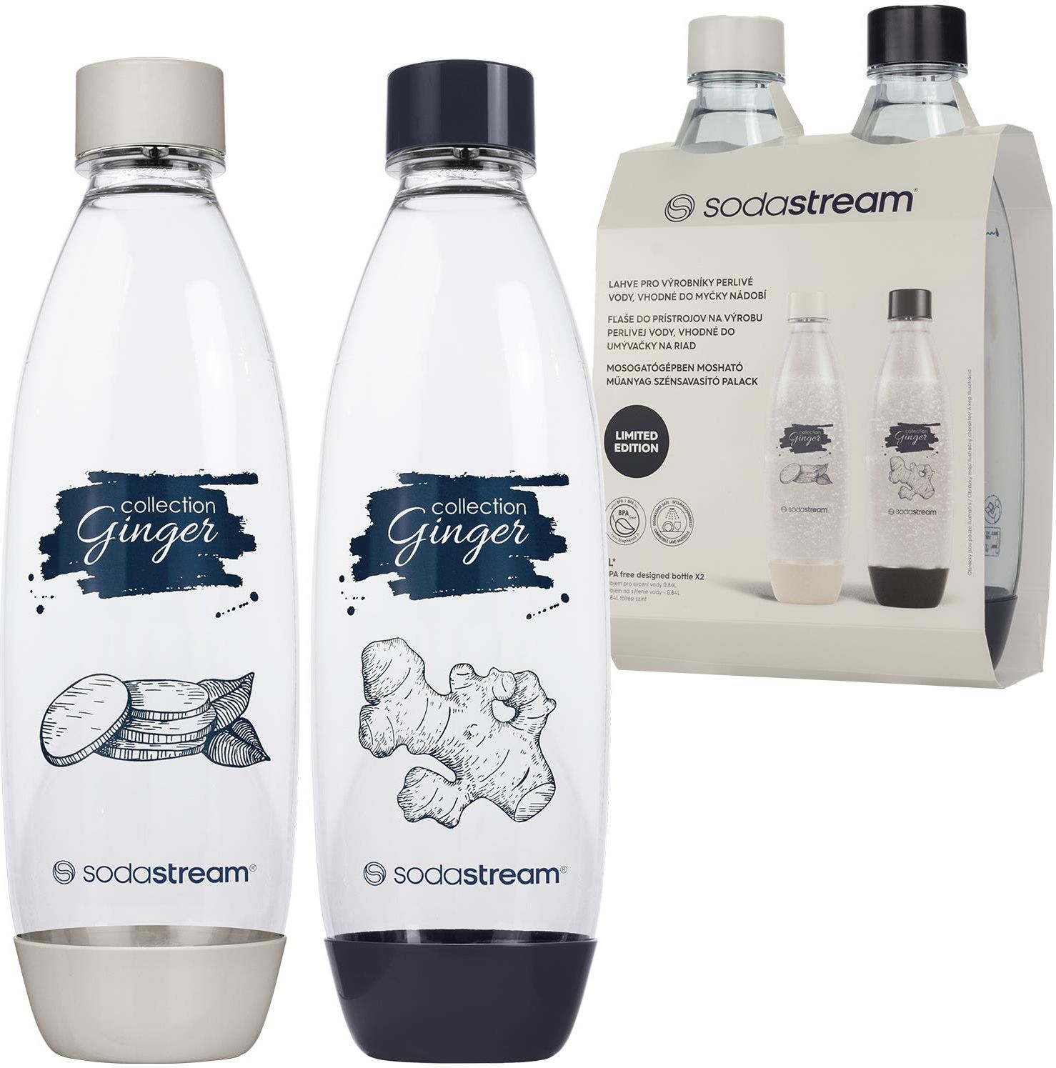 SodaStream Butelka FUSE 2X1L Ginger CO WYRÓŻNIA NASZ PRODUKT **Limitowana edycja w stylu Ginger Ale** - Unikalne wzornictwo w eleganckich kolorach ciemnoniebieskim i piaskowo-kremowym, które wprowadzi designerski akcent do Twojej kuchni. **Zaawansowany materiał Tritan** - Wyjątkowe właściwości …