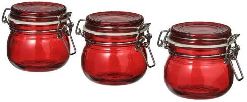 Słoik z pokrywką VINTERFINT czerwony 130ml 3 szt. Słoiki, które idealnie się nadają na przetwory lub przyprawy. Szczelna uszczelka zamknie wewnątrz wszystkie smaki. Świetnie się sprawdzą w przypadku domowych smakołyków, które można zabrać ze sobą na świąteczne przyjęcia. Słoik ma hermetyczne zamknięcie, dzięki czemu doskonale nadaje się do przechowywania Twoich ulubionych dżemów i galaretek domowej roboty. Idealny do przechowywania ziół i przypraw, a także innych suchych produków żywnościowych. Dane techniczne: Ilość: 3 szt.