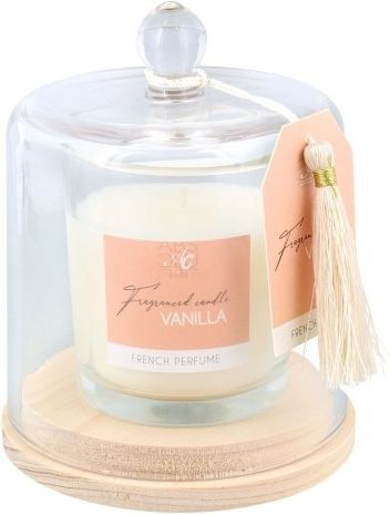 Świeca zapachowa waniliowa klosz szkło drewno Ø11 cm Gustowny zestaw ze świecą zapachową i kloszem to idealny prezent dla każdego, także dla siebie. Cechy: Świeca w szkle o zapachu waniliowym Z ozdobnym frędzlem przy kloszu Drewniana podstawa ze szklanym kloszem Specyfikacja: Zapach: wanilia Kolor: …