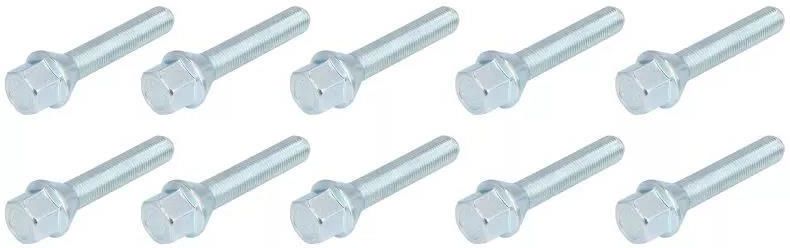 Śruba koła, wymiar gwintu: m12mm, skok gwintu: 1,25mm, długość gwintu: 55mm, rozmiar klucza: 17mm, liczba: 10.