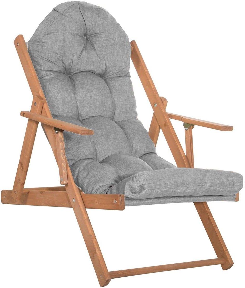 Springos Leżak Ogrodowy Borneo Drewniany Z 3-Stopniową Regulacją I Poduszką Na Balkon Taras Szary Kraków