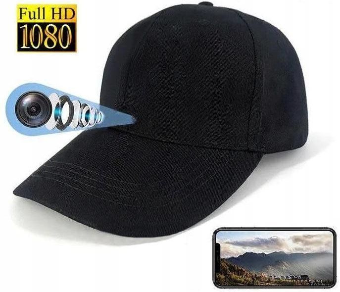 Szpiegowska Kamera FULL HD (obiektyw 1mm!), Ukryta w Czapce Bejsbolówce, Umożliwiająca Podgląd/Nasłuch (na żywo!) z Telefonu, Tabletu lub z Komputera za Pomocą WiFi/P2P + Dźwięk + Zapis + Aparat Foto + Możliwość Powiadomień o Wykrytym Ruchu i wiele innych. Nowy wymiar i jakość …