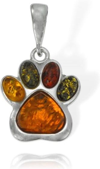Srebrny Wisiorek Łapa Łapka z Bursztynami Kraków