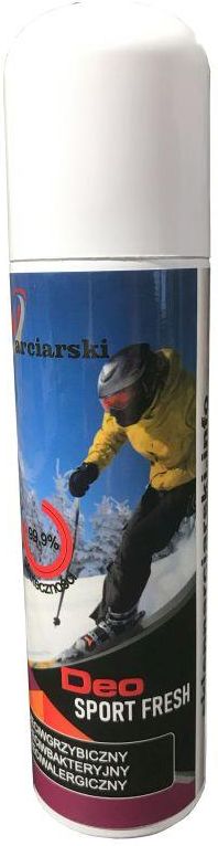 Środek do dezynfekcji odzieży i obuwia sportowego oraz narciarskiego. Przeznaczony przede wszystkim do dezynfekcji butów narciarskich, obuwia sportowego, turystycznego i codziennego a także kasków, rękawic, łyżew, rolek itp. To kompozycja starannie dobranych składników o działaniu wirusobójczym, bakteriobójczym i grzybobójczym. Skutecznie likwiduje mikroorganizmy. Wykazuje 99,9% skuteczności dezynfekcji w czasie 30 sekund. Zapobiega chorobom grzybicy skóry i paznokci wywołanych przez dermatofity oraz niweluje nieprzyjemny zapach spowodowany przez grzyby i bakterie. Zawiera wyciąg z olejków eukaliptusa nadając przyjemny zapach. Szybko wysycha. Skład:Butane, Propane, Alkohol Denat (98,9%) isobutan, olejek z liści eukaliptusa. Sposób użycia (zawsze przed użyciem wstrząsnąć pojemnik): 1. Obuwie (w tym narciarskie, sportowe, codzienne, łyżwy, rolki) oraz rękawice: trzymać obuwie do góry podeszwą, wpryskać preparat do środka obuwia przez ok. 5 sekund. Po około minucie można korzystać ze sprzętu 2. Kaski, czapki: spryskać elementy mające kontakt z ciałem przez ok. 5 sekund. Po ok. minucie można korzystać ze sprzętu. Ważne! Środek można zastosować również w celu dezynfekcji rąk. Pojemność 150ml - butelka w spray'u pod ciśnieniem.