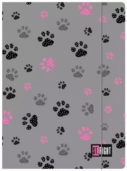 Teczka z gumką A4 STRIGHT Paws Cechy produktu: wytrzymała teczka z gumką, która pomieści format A4, wykonana z kartonu o gramaturze 300 g/m2, wyposażona w gumkę oraz wewnętrzne klapki chroniące zawartość przed wypadnięciem, nabłyszczana powierzchnia nadaje jej unikalny i bardzo atrakcyjny wygląd, świetnie sprawdzi się do przechowywania prac plastycznych. wymiary produktu: 23,5 x 31,5cm