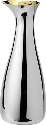 Karafka na wodę (1 l) Foster Stelton Podstawowe informacje Producent: Stelton Kod produktu: 720 Kolor: srebrny, złoty Materiał: stal nierdzewna Wymiary: 10,5 x 27 cm (śr. x wys.) Pojemność: 1 l • Praktyczna – posiada stoper przeciw rozlaniu wody. • Uniwersalna – pasuje do różnych typów zastawy. • Elegancki design – polerowana stal łączona z malowanymi na złoto elementami. • Projekt światowej sławy architekta – Normana Fostera. Karafka na wodę może wyglądać standardowo albo tak, jak naczynie z kolekcji Foster Stelton. Charakteryzuje się minimalistycznymi kształtami i polerowaną na wysoki połysk powierzchnią. Karafka wykonana jest ze stali nierdzewnej, a wewnętrzne elementy zostały pomalowane na złoty kolor. Praktycznym dodatkiem do naczynia jest stoper, który zapobiega rozlaniu wody. Karafka ma pojemność 1 l. Dzięki prostym kształtom świetnie komponuje się z różnymi typami zastawy. Zaprojektował ją Norman Foster – twórca m. in. budynku siedziby Apple. Naczynie należy myć ręcznie. Aby pięknie błyszczało, po myciu powinno być wypolerowane miękką ściereczką.