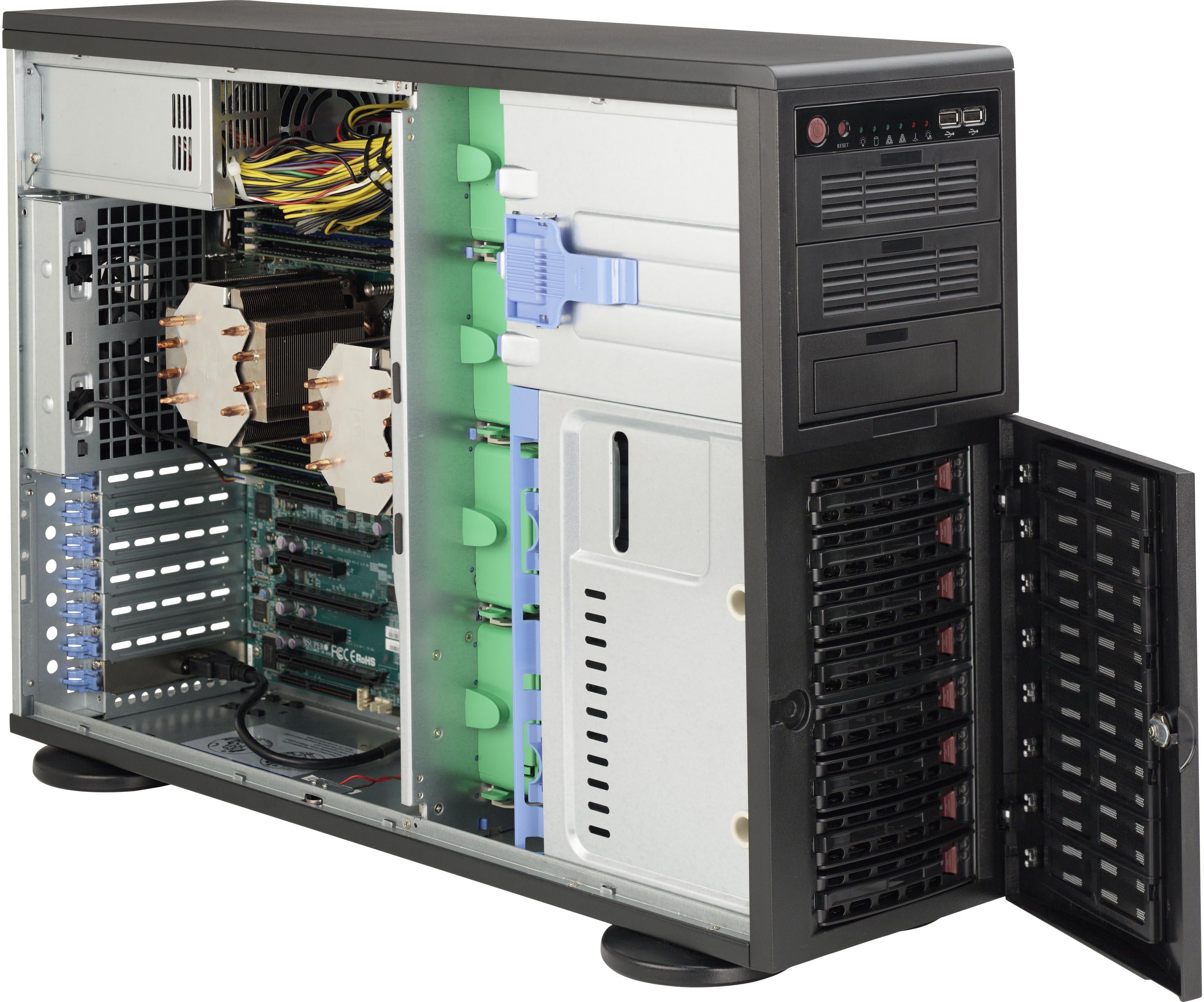 Obudowa typu 4U, która obsługuje maksymalny rozmiar płyty głównej 12" x 13" E-ATX i ATX. Obsługuje Pojedyncze i podwójne procesory Intel i AMD o wymiarach: Wysokość 17,8 cala (452 ​​mm) Szerokość 7" (178mm) Głębokość 25,5 cala (647 mm) Waga brutto 25,4 kg Waga netto 24,04 kg Wyposażona w gniazda rozszerzeń i zatoki napędowe: Posiada 7 gniazd rozszerzeń o pełnej wysokości i długości, a także 8 wnęk na dyski SAS 3,5"/2,5" typu hot-swap z SES3 Do naszej dyspozycji mamy płytę montażową: - 8-portowa 4U/wieża 3,5 cala SAS3/SAS2/SATA3 12 Gb/s do obudowy SC743/SC745 Posiadająca dyski peryferyjne - 2x standardowa wnęka na napęd 5,25 cala Wewnątrz znajdziemy również zamontowane porty, wentylatory oraz zasilacz: Obudowa posiada również - 1x wentylator tylny PWM 92 mm - 2x 80mm wentylatory środkowe PWM w obudowie - 2 porty 3.0 - Zasilacz wielowyjściowy PS2 1200W 80plus Platyna.