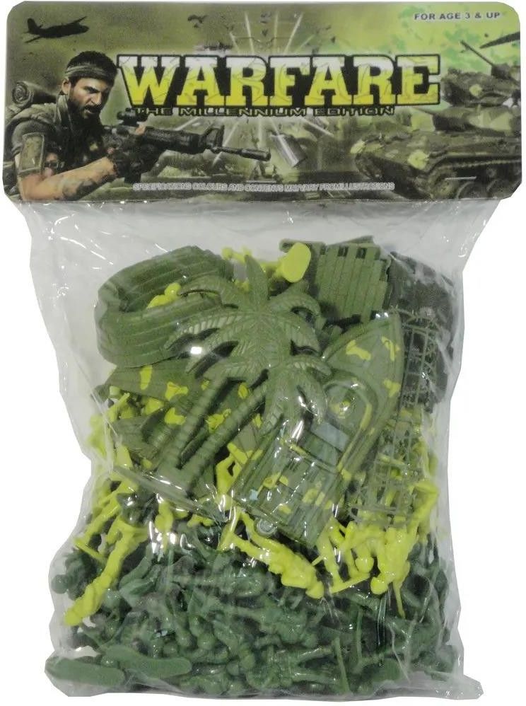 Klasyczna zabawa dziecięca polegająca na odgrywaniu scen bitewnych lub wojennych przy użyciu małych figurek przedstawiających żołnierzy. W zestawie m.in.: figurki żołnierzy, pojazdy. Produkt zapakowany w przezroczysty worek. Produkt dla dzieci powyżej 3 lat. Podane wymiary stanowią wymiar opakowania.