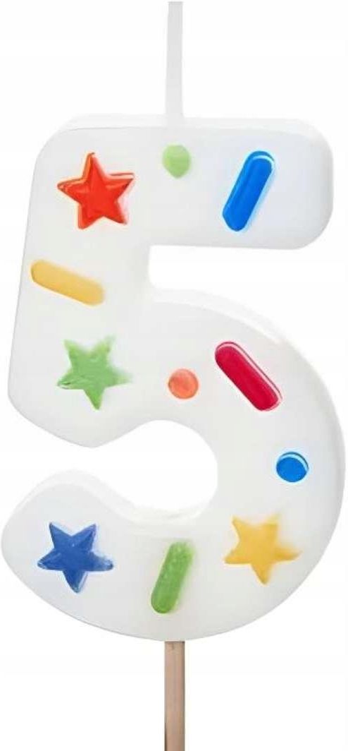 Świeczka urodzinowa 5 biała konfetti 5.5cm Kraków