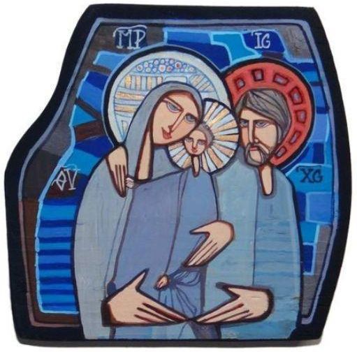 Obraz wykonany włoskimi farbami akrylowymi na litym drewnie, z wykorzystaniem naturalnych i unikalnych walorów każdej deski: faktury, słojów itp. Podobrazie celowo nie jest idealnie wygładzone, w wielu miejscach zachowana jest oryginalna struktura drewna. Zabezpieczony werniksem półmatowym, gotowy do zawieszenia, nie wymaga dodatkowej oprawy. Boki zamalowane w tonacji. Kolory mogą się nieco różnić od oryginału, ponieważ każda ikona jest malowana ręcznie. Wys. 14 cm