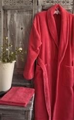 DUO - Szlafrok kolor Koral Szlafroki wykonane są z dzianiny o specjalnej konstrukcji: BAWEŁNA od strony wewnętrznej gwarantuje chłonność oraz przyjemny kontakt ze skórą, a super miękki WELUR na stronie zewnętrznej podkreśla subtelny wygląd szlafroka. Skład: 52% bawełna, 48% poliester Gramatura: 320 g/m2