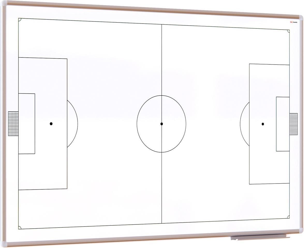 Tablica taktyczna PIŁKA NOŻNA 150x100 cm tablica trenerska magnetyczna biała Kraj produkcji: POLSKA | Rozmiar powierzchni: 150x100cm | Kolor: biały POWIERZCHNIA - magnetyczna tablica ALLboards wykonana jest z blachy lakierowanej na biało, co zapewnia idealnie gładką powierzchnię, łatwość w czyszczeniu oraz długoletnią wytrzymałość. Powierzchnia tablicy pozwala na używanie markerów ścieralnych oraz wszelkiego rodzaju magnesów. RAMA - wykonana z aluminium zabezpieczonego przed korozją, w eleganckim szarym kolorze. Wzmocniona konstrukcja zapewnia stabilność całej tablicy i odporność na uszkodzenia. MONTAŻ - montowana jest na ścianie za pomocą otworów w rogach tablicy. Miejsce montażu jest niewidoczne, ukryte za plastikowymi zaślepkami. Tablica może być montowana w pionie oraz w poziomie. ZASTOSOWANIE - tablica idealnie nadaje się zarówno do wszelkiego rodzaju klubów piłkarskich, szkółek, centrów treningowych oraz do użytku prywatnego. Niezawodna powierzchnia Biała magnetyczna tablica ALLboards wykonana jest z sztywnej i wytrzymałej blachy, dzięki której tablica zyskuje właściwości magnetyczne. Blacha pokryta jest warstwą lakieru, który nadaje tablicy biały kolor oraz gładką i lśniącą powierzchnię. Dzięki zastosowaniu odpowiedniego lakieru, tablice można ścierać na sucho za pomocą dołączonej do zestawu gąbki lub papierowego ręcznika. Do tablicy możemy przypinać każdego rodzaju magnesy: neodymowe, turystyczne, klasyczne, ozdobne. Znakomicie nadaje się również do wykorzystania z ramkami magnetycznymi oraz innymi magnetycznymi akcesoriami. Wytrzymała rama Tablica ALLboards otoczona jest elegancką, szarą, aluminiową ramą PREMIUM EXPO. Rama została zabezpieczona przed korozją w procesie anodowania. Anodowanie to proces, w czasie którego na powierzchni metalu wytwarza się warstwa tlenku glinu. Dzięki niemu powierzchnia ramy zostaje nie tylko zabezpieczona przed korozją ale także staje się gładka i lśniąca. Mimo wielkiej wytrzymałości, szerokość ramy to zaledwie 2 cm. Prosty, intuicyjny montaż Tablica jest montowana za pomocą czterech otworów znajdujących się w rogach konstrukcji. Zestaw wkrętów niezbędnych do powieszenia tablicy oraz instrukcja znajdują się w zestawie. Znajdują się w nim również eleganckie plastikowe zaślepki, dzięki czemu elementy montażowe są całkowicie niewidoczne oraz nie zaburzają estetyki tablicy. Zastosowanie Z jego pomocą łatwiej zorganizujesz i przekażesz wiadomości współpracownikom lub uczniom. Z powodzeniem posłuży jako pomoc w szkółkach, na zebraniach oraz konferencjach – zarówno do notowania, jak i prezentowania informacji.
