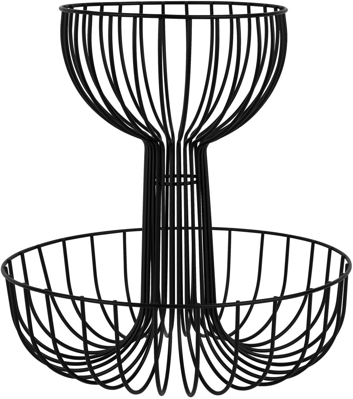 Elegancki 2 poziomowy metalowy czarny koszyk na owoce i nie tylko. Poziom 1 - śr. 19 cm wys :16,5 cm Poziom 2 - śr. 30 cm wys: 30,5 cm