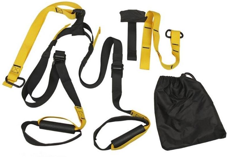 Taśmy treningowe S825810 czarny S825810 Właściwości Zestaw taśm treningowych typu TRX Zestaw wykonany z nylonowej plecionej taśmy zakończonej uchwytami oraz metalowymi karabińczykami. Uchwyty pokryte są gumą neoprenową, dzięki czemu dłonie nie ślizgają się podczas ćwiczeń. Regulacja za pomocą klamry pomaga w zależności od wykonywanego ćwiczenia na dopasowanie długości taśm do osoby ćwiczącej. Osoba ćwicząca za pomocy tego typu taśm, dźwiga swój własny ciężar co redukuje ryzyko nadmiernego obciążenia ciała i w rezultacie niweluje możliwość powstania kontuzji. Zestaw został wyposażony w odpowieni uchwyt do drzwi co pozwala na wykonywanie ćwiczeń w warunkach domowych. Idealny równiez do użytku w siłowniach oraz w plenerze (w parku, lesie czy w przystosowanych do tego miejscach - parkour) Ćwiczenia na taśmach rozwijają siłę, równowagę, elastyczność oraz kondycję. Atutem przy wykorzystywaniu taśm jest praca wielu grup mięśniowych, które poprawią prawidłową postawę oraz stabilizację sylwetki. Parametry Kategoria: Akcesoria KOLOR: Czarny, żółty Płeć: Mężczyźni, Kobiety Sport: Trening Typ produktu: Sprzęt treningowy Podkategoria: Sprzęt siłowy