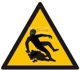 Ostrzeżenie przed śliską nawierzchnią. Podłoże: - folia samoprzylepna, - sztywna płyta. Wymiary: - 105 x 105 mm, - 210 x 210 mm.