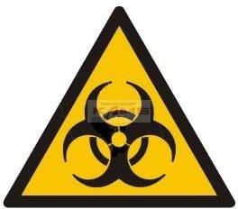 Ostrzeżenie przed skażeniem biologicznym. Podłoże: - folia samoprzylepna, - sztywna płyta. Wymiary: - 105 x 105 mm, - 210 x 210 mm.