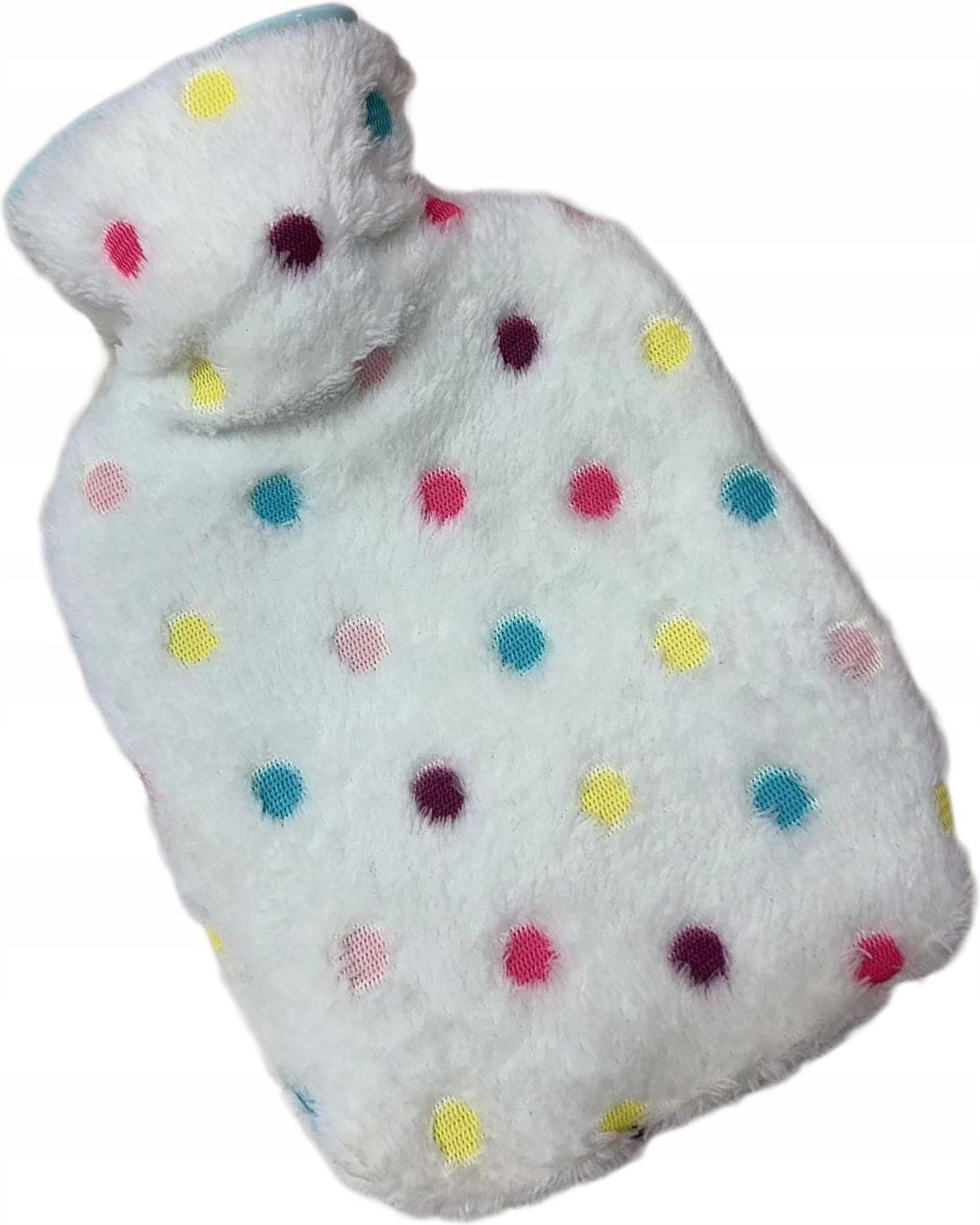 PREZENTUJEMY MIĘCIUTKI PLUSZOWY TERMOFOR GUMOWY W POKROWCU 1L POJEMNOŚĆ: 1L KOLOR PLUSZU: BIAŁY W KOLOROWE KROPKI ___________________________________________________ MIĘKKI PLUSZOWY POKROWIEC - termofor posiada miękki w dotyku i delikatny dla wrażliwej skóry dziecka puszysty pokrowiec dzięki, któremu doskonale imituje przytulankę. Jest wysoce szczelny, wygodny w użyciu i łatwy w napełnianiu. 1000ml POJEMNOŚCI - Każda kobieta będzie szczęśliwa z posiadania pięknego, cieplutkiego i mięciutkiego termoforu, którym może się ogrzać i zapewnić sobie chwile relaksu. Przeznaczony jest do miejscowego ogrzewania ciała w celach profilaktyczno-leczniczych i łagodzeniu bólu. Może być wykorzystywany zarówno przy kolkach u niemowląt i dzieci, jak również przy bólach brzucha, bólach mięśni i reumatycznych, oraz podczas przeziębienia i grypy. CIEPŁO - miękki termofor gumowy w pokrowcu to najlepszy kompan na zimowe wieczory jest wykonany z najwyższej jakości materiałów, ma łagodzący wpływ na bóle menstruacyjne oraz inne dolegliwości powiązane ze skurczem mięśni. Relaksuje, rozgrzewa, koi ból reumatyczny, ból mięśniowy i ułatwia zasypianie. ZIMNE OKŁADY - poza swoimi właściwościami rozgrzewającymi, termofor można również wypełnić zimną wodą i stosować go jako okład chłodzący, który doskonale pomoże przy zbijaniu temperatury, łagodzeniu bólu zęba, czy ukąszeń. POMYSŁ NA PREZENT - To również fajny pomysł na prezent na święta. PRZYTUL SIĘ! Jeśli jesteś zmarzluchem i od pierwszych dni jesieni doskwiera Ci zimne powietrze, z pewnością przyda się termofor o pojemności 1 l. Pokryty miłym w dotyku pokrowcem który wpłynie na Twój komfort i dobre samopoczucie. Działa rozluźniająco, minimalizując skurcze brzucha. Taki okład przyniesie ulgę już po kilkunastu minutach. POJEMNOŚĆ 1L Sam termofor został wykonany z trwałej i wytrzymałej gumy. To najłatwiejsza i najbardziej oszczędna forma rozgrzania się po przyjściu do domu. Pojemnik wystarczy zalać gorącą wodą (UWAGA! Aby zapobiec oparzeniom, maksymalna temperatura powinna mieć 50-70 stopni) i szczelnie zamknąć solidnym korkiem. Termofor na długo utrzymuje pożądaną temperaturę, co wpłynie na Twój komfort i dobre samopoczucie. Gumowy termofor możesz używać w celach nie tylko rozgrzewających, ale też do łagodzenia dolegliwości bólowych. SPOSÓB UŻYTKOWANIA Przed użyciem należy wypuścić pozostałe w termoforze powietrze. Termofor należy napełniać wodą o temp. nie przekraczającej 50-70 stopni Celsjusza. Zaleca się napełnienie do maksymalnie 2/3 pojemności termofora. Po napełnieniu wodą należy bezwzględnie sprawdzić szczelność zamknięcia. Stopniowo uciskając termofor poczekać, aż zacznie z niego wylewać się woda i wtedy dokręcić nakrętkę. Po skończeniu używania termofora, należy wylać wodę i wysuszyć go. Podczas przechowywania korek od termofora musi być zdjęty, a termofor przechowywany w suchym i ciemnym miejscu. ZALETY posiada pokrowiec ze sztucznego futerka idealnie nadaje się do łagodzenia bólu pomocny w leczeniu urazów ciekawy pomysł na prezent pokrowiec prać w temperaturze maksymalnie 40 stopni wysoka szczelność łatwe napełnianie utrzymuje ciepło: do 1,5-2,5h idealny do wrażliwej skóry pojemność: 1 litr