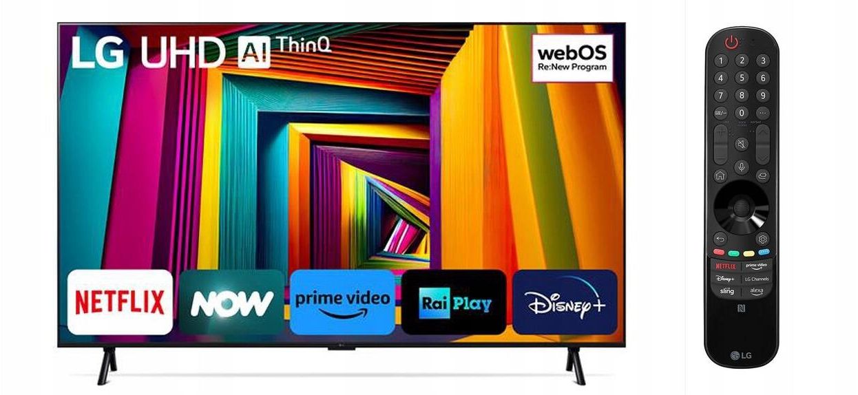 !OUTLETOWA - Wyprzedaż z likwidacji magazynu dla twojego domostwa (przy opcji dokumentu fiskalnego)! 98-calowy telewizor LG UHD UT91 4K Smart TV 98UT91006LA Kluczowe cechy Maksymalne szerokie zanurzenie dzięki ultra dużemu wyświetlaczowi W pełni zoptymalizowany obraz i dźwięk dzięki procesorowi alfa 8 AI 4K Zapierający dech w piersiach kolor i detale dzięki 4K HDR10 Pro 4 lata aktualizacji gwarantowanych przez 5 lat dzięki webOS Re:New Program Wizualizacje i dźwięk godne kina z TRYBEM FILMOWCA Rozszerz swój widok na każdy wyraźny szczegół Zupełnie nowy Ultra HD dodaje żywotności każdemu kolorowi na zapierająco dużym wyświetlaczu. *Symulowany obraz ekranu. Super Ultra Duży Ekran Zanurz się głębiej w największym telewizorze LG Przeżyj akcję w realistycznej skali i szczegółach na ultradużym telewizorze LG, aby uzyskać bogatszy, bardziej urzekający widok. *Symulowany obraz ekranu. Procesor AI alfa 8 4K Zadziwiająca inteligencja podnosi poziom Twojego doświadczenia UHD Nasz procesor alfa 8 AI 4K automatycznie optymalizuje dźwięk i obraz na największym wyświetlaczu UHD, zapewniając niesamowitą skalę, która zawsze wygląda ostro. Dowiedz się więcej Dwa kwadratowe obrazy są pokazane w poziomym rzędzie. Na pierwszym zdjęciu po lewej stronie pokazano chip alfa 5 AI Processor 4 K Gen7 z żółtym światłem wydobywającym się spod spodu. Drugi obraz po prawej stronie, telewizory LG QNED89, QNED90 i QNED99, są pokazane w kolejności od lewej do prawej. Na każdym telewizorze widać kolorową plamę, a nad telewizorami widnieje napis „Ultra Big TV”. Wstrzymaj wideo *Symulowany obraz ekranu. Wstrzymaj wideo Strojenie akustyczne AI Optymalny dźwięk pasuje do Twojej przestrzeni System dźwiękowy wykrywa układ Twojego pokoju i miejsce, w którym siedzisz, aby stworzyć wokół siebie kopułę dźwięku, idealnie dostrojoną do unikalnej akustyki Twojego pokoju. Super Upscaling AI dla ultra dużego ekranu Sztuczna inteligencja utrzymuje ostrość na dużym ekranie Funkcja AI Super Upscaling ulepsza zawartość, dzięki czemu idealnie pasuje do bardzo dużego wyświetlacza i wygląda zadziwiająco wyraźnie. *98 cali na UT90 oferuje funkcję AI Picture Pro i AI Super Upscaling. **AI Picture Pro nie będzie współpracować z żadnymi treściami chronionymi prawem autorskim w usługach OTT. ***Jakość obrazu przeskalowanej zawartości będzie się różnić w zależności od rozdzielczości źródła. HDR10 Pro Podświetl najdrobniejsze szczegóły na największym ekranie Zanurz się w świecie, w którym kolory promieniują intensywniej, a jasność jest dostosowana do ostro zdefiniowanego obrazu, co jest możliwe dzięki HDR10 Pro. W fioletowo zabarwionym, zacienionym pokoju pokazano zbliżenie twarzy mężczyzny na podzielonym ekranie. Po lewej stronie wyświetlany jest napis „SDR”, a obraz jest rozmazany. Po prawej stronie widoczny jest napis „HDR10 Pro”, a obraz jest wyraźny i ostro zdefiniowany. *HDR10 Pro to technologia opracowana przez LG Electronics w oparciu o standaryzowaną jakość obrazu standardu 'HDR10'. Ekran kina Zmaksymalizuj widok dzięki cieńszej ramce Osiągnij zanurzenie od krawędzi do krawędzi dzięki eleganckiej ramce, aby uzyskać szersze i pełniejsze wrażenia kinowe. Wstrzymaj wideo *Symulowany obraz ekranu. **UT90 ma maksymalnie 98 cali. webOS Spersonalizuj swoje wrażenia z dużego ekranu Ciesz się telewizorem dostosowanym do Twoich potrzeb dzięki funkcjom personalizacji, takim jak Mój profil, Kreator zdjęć AI, Konsjerż AI i Szybka karta. Spersonalizuj swoje wrażenia z dużego ekranuDowiedz się więcej *Obsługiwane menu i aplikacje mogą się różnić w zależności od kraju i być różne po wydaniu. **Rekomendacje dotyczące słów kluczowych różnią się w zależności od aplikacji i pory dnia i są dostępne wyłącznie w krajach, które obsługują NLP w swoim języku ojczystym. ***Symulowane obrazy ekranowe. ****Aktualizacja zabezpieczeń jest obsługiwana do: 31.12.2028. Zdjęcie dostosowane do Twojego gustu Wybierz swoje ulubione zdjęcia, a AI Picture Wizard utworzy zdjęcie dostosowane dokładnie do Twojego wyjątkowego gustu spośród 85 milionów możliwości, a następnie zapisze je w Twoim profilu. Tryb filmowca Ciesz się scenami filmowymi w oszałamiającej skali Zanurz się w autentycznych scenach na większą skalę. FILMMAKER Mode precyzyjnie dostarcza filmy dokładnie tak, jak zamierzył reżyser. Mężczyzna w ciemnym studiu montażowym patrzy na telewizor LG wyświetlający zachód słońca. Na prawym dole obrazu znajduje się logo TRYBU FILMMAKER. *Symulowane obrazy ekranowe. **FILMMAKER Mode jest znakiem towarowym firmy UHD Alliance, Inc. Doświadczenie kina domowego Zmaksymalizuj magię filmową w domu Atmosfera kina, odtworzona w domu. HDR10 Pro gwarantuje, że każdy film zostanie zaprezentowany w prawdziwej okazałości, z wyjątkowo dokładnymi kolorami i kontrastami, co pozwala na bardziej wciągające oglądanie filmów. Rodzina siedziała na podłodze słabo oświetlonego salonu przy małym stoliku i patrzyła w górę na telewizor LG zamontowany na ścianie, pokazujący Ziemię z kosmosu. *HDR10 Pro to technologia opracowana przez LG Electronics w oparciu o standaryzowaną jakość obrazu standardu 'HDR10'. Potężna rozgrywka Zanurz się z pełną prędkością w akcji Wciągająca gra HGiG pozostaje płynna przy dużej prędkości dzięki ALLM, a eARC zapewnia, że wszystko brzmi niesamowicie. Gra wyścigowa na mecie, z tabliczką z napisem „WYGRAJ!", gdy gracz zaciska się na joysticku do gry. Logo ALLM, eARC, HGiG umieszczone jest w lewym dolnym rogu. *HGiG to grupa wolontariuszy z branży gier i wyświetlaczy telewizyjnych, którzy spotykają się, aby określić i udostępnić społeczeństwu wytyczne mające na celu poprawę wrażeń konsumentów z gier w HDR. **Wsparcie dla HGiG może się różnić w zależności od kraju. SPECYFIKACJA TECHNICZNA O