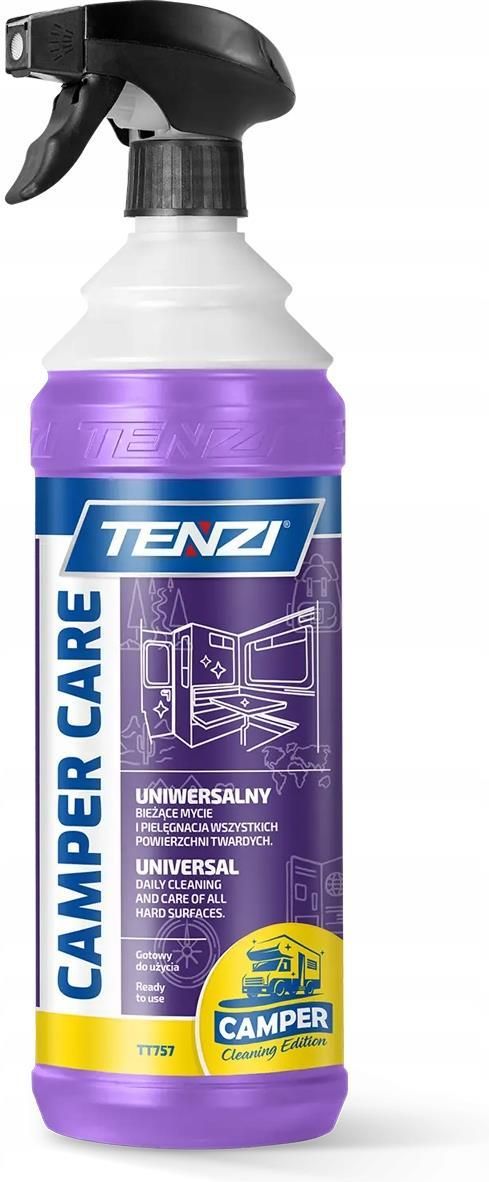 TENZI CAMPER CARE 1 L Uniwersalny preparat myjąco-pielęgnujący o przyjemnym, świeżym zapachu Camper Care to uniwersalny preparat myjąco-pielęgnujący o przyjemnym, świeżym zapachu, idealny do codziennej pielęgnacji wszelkich powierzchni błyszczących, w tym lakierowanych, szkliwionych i glazurowanych. Skutecznie czyści, pielęgnuje i nabłyszcza, jednocześnie chroniąc powierzchnie przed osadzaniem się kurzu. Doskonały do mebli, blatów, poręczy, parapetów, wyposażenia wnętrz, a także posadzek i boazerii. Bardzo wydajny, nie pozostawia tłustej powłoki i jest bezpieczny dla delikatnych materiałów, co czyni go niezastąpionym środkiem w domowej pielęgnacji. Produkt jest niezwykle wydajny – wystarczy niewielka ilość, aby skutecznie oczyścić powierzchnię, bez pozostawiania tłustej powłoki czy smug. Dodatkowo, jest bezpieczny dla delikatnych materiałów, co czyni go niezastąpionym środkiem do codziennej pielęgnacji domowych powierzchni. Camper Care to produkt, który nie tylko usuwa zabrudzenia, ale również tworzy warstwę ochronną, która zapobiega szybkiemu gromadzeniu się kurzu i brudu. Dzięki temu powierzchnie pozostają czyste na dłużej, co znacznie ułatwia utrzymanie porządku w domu. Stosowanie Camper Care jest bardzo proste – nie wymaga rozcieńczania. Wystarczy nanieść 1-2 ml preparatu na każdy metr kwadratowy powierzchni za pomocą spryskiwacza, a następnie przetrzeć i wypolerować do sucha szmatką z mikrofibry, co zapewnia idealny połysk i czystość. Produkt jest doskonałym wyborem do regularnego użytkowania, a jego szybkie działanie i świeży zapach sprawiają, że sprzątanie staje się przyjemnością. Camper Care to niezawodny preparat dla każdego, kto pragnie dbać o swoje wnętrza, zapewniając im codzienną świeżość, czystość i blask. To idealne połączenie skuteczności i delikatności, które spełni oczekiwania nawet najbardziej wymagających użytkowników, pomagając utrzymać wszystkie powierzchnie w doskonałym stanie. Uwagi do użycia: Wypolerować powierzchnię do sucha szmatką z mikrofibry. Sposób użycia: Nanieść preparat na czyszczoną powierzchnię. Wytrzeć szmatką do sucha i wypolerować.