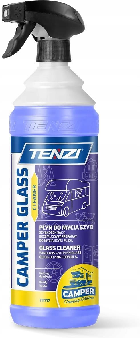 TENZI CAMPER GLASS CLEANER, 1L Camper Glass to szybkoschnący preparat stworzony do mycia szyb, plexi, luster, reflektorów samochodowych oraz innych powierzchni szkłopodobnych. Dzięki zaawansowanej formule nie tylko skutecznie usuwa zanieczyszczenia, ale jednocześnie pielęgnuje i nadaje blask, zapewniając idealną czystość bez smug. Produkt gwarantuje doskonałą przejrzystość, co sprawia, że jest niezastąpiony w utrzymaniu perfekcyjnego wyglądu szklanych powierzchni. Dodatkowo pozostawia przyjemny, świeży zapach, który dodaje wnętrzu kempingu wyjątkowej świeżości. Sposób użycia: Równomiernie rozprowadzić preparat po całej powierzchni. Wytrzeć szmatką do sucha i wypolerować. Camper Glass to szybkoschnący preparat stworzony specjalnie do mycia i pielęgnacji szyb, plexi, luster, reflektorów samochodowych oraz innych powierzchni szkłopodobnych. Jego zaawansowana formuła nie tylko efektywnie usuwa różnego rodzaju zabrudzenia, ale również zapewnia lśniący blask, pozostawiając czyszczone powierzchnie idealnie gładkie i wolne od smug. Dzięki temu produktowi szklane elementy wyglądają perfekcyjnie, a przejrzystość staje się doskonała, co ma ogromne znaczenie zwłaszcza w przypadku reflektorów samochodowych i szyb, gdzie czystość bez smug ma bezpośredni wpływ na widoczność.