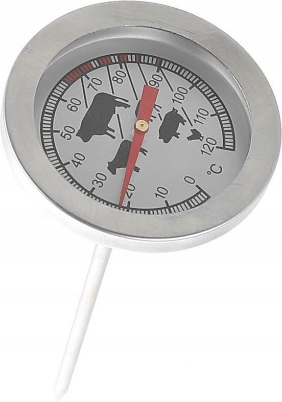 Termometr wkłuwany, doskonały do pieczenia, grillowania Cechy produktu: Zakres temperatur od 0°C do 120°C Obudowa wykonana z metalu odpornego na rdzę Szczegółowa podziałka wskazuje temperaturę pieczenia drobiu, wieprzowiny, cielęciny, jagnięciny oraz wołowiny Termometr bezrtęciowy Doskonały do użytku ze wszystkimi rodzajami mięsa i drobiu Średnica tarczy: 5,2 cm Długość całkowita: 12 cm