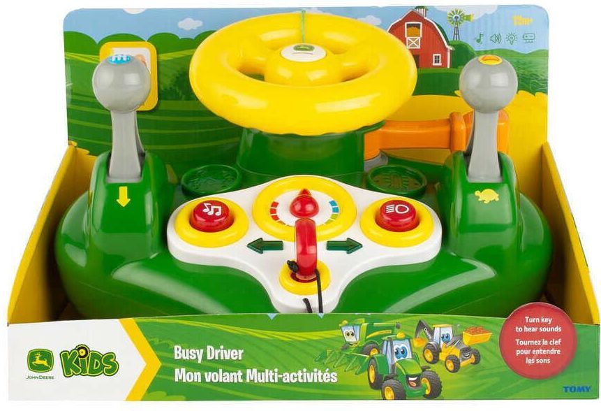 Mały Farmer za Kierownicą – John Deere Busy Driver! Teraz Twój mały farmer może poczuć się jak prawdziwy kierowca traktora! John Deere Busy Driver to interaktywna zabawka pełna ekscytujących funkcji, które sprawią, że dziecko poczuje się jak na prawdziwej farmie. Realistyczne doświadczenie jazdy dzięki funkcjom takim jak odpalanie silnika, zmiana biegów czy jazda w przód lub tył, której towarzyszą dźwięki ostrzegawcze oraz mnóstwo interaktywnych elementów sprawiają, że zabawa staje się prawdziwą przygodą. Charakterystyka produktu: Realistyczne doświadczenie Jazdy Odpal silnik – przekręcając kluczyk na smyczy Zmiana biegów – przesuń dźwignię w górę lub w dół, aby dostosować prędkość Jazda do tyłu – usłysz sygnał "beep, beep" przy cofaniu w stronę żółwia Przyspieszenie – dynamiczny dźwięk jazdy w stronę królika Obracana kierownica – wyposażona w działający klakson Muzyczny przycisk – aktywuje wesołą melodię, aby umilić jazdy Przycisk awaryjny – uruchamia migające światła ostrzegawcze i dźwięk alarmu Licznik kilometrów – obraca się, wydając satysfakcjonujący „klik, klik, klik” Z tak wieloma funkcjami John Deere Busy Driver przenosi dzieci do świata prawdziwego rolnictwa. Maluchy mogą naśladować dorosłych, rozwijając przy tym wyobraźnię, koordynację i umiejętności motoryczne. Gotowy na ekscytującą podróż? Z John Deere Busy Driver każda zabawa to nowa przygoda!