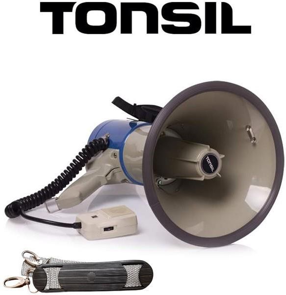 Megafon, dostępny w zestawie składającym się z głośnika tubowego,wbudowanego wzmacniacza i mikrofonu. Umożliwia nagłaśnianie mówcy iznaczne zwiększenie słyszalności jego głosu. Zasięg do 700m. Zasilanie:12V (8xR14). Masa: 1,65 kg. Podczas pracy megafon może być trzymany w ręce lub też być przewieszonyprzez ramię na pasku. W skład urządzenia wchodzi mikrofon posiadającyzabezpieczenia przed przesterowaniem megafonu, włącznik i wyłącznikurządzenia oraz regulator głośności. Konstrukcja mikrofonu umożliwiajego odłączenie od megafonu. Megafon wykonany jest z elementówmetalowych i z tworzywa ABS. Zalecenia użytkowe: Jeżeli megafonprzewieszony jest przez ramię to w celu obsługi urządzenia mikrofonnalezy trzymać w ręku. Mówiąc do mikrofonu należy należy trzymaćwciśnięty znajdujący się na nim przycisk. W sytuacji gdy megafon trzymany jest w ręce, mikrofon należy powiesić na uchwycieznajdującym się z tyłu megafonu. Mówiąc do mikrofonu należy trzymaćwciśnięty przycisk znajdujący sie w górnej części rączki. Tubę megafonunależy skierować w kierunku słuchaczy lub wybranego obiektu. Mikrof należy przybliżyć do ust i mówić normalnym głosem. Poziom głośności należy regulować przy użyciu pokrętła z prawej strony mikrofonu. Poziom głośności należy dostosować do warunków zewnętrznych oraz ustawić wtaki sposób aby zapewnić właściwą pracę megafonu. Dane techniczne megafonu Zasięg 500-700m (w zależności od warunków zewnętrznych) Zasilanie 8 x R14 (brak w wyposażeniu standardowym) Masa około 1,65 kg (bez baterii) Wymiary średnica 230 mm, długość 340 mm Megafon: Mikrofon ręczny z kablem spiralnym (podłączony na stałe). Gniazdo zewnętrznego zasilania 12V. Syrena (włączana). Uchwyt, pasek, kabel zasilający do samochodu. Dostarczany bez baterii. Instrukcja obsługi.