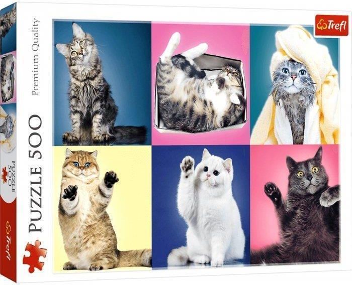 Trefl Puzzle 500el. Kociaki 37377 Puzzle 500 elementów przedstawiający zdjęcia kotków. Wymiar obrazka 48cmx34cm. Wysoka jakość wykonania z ekologicznych materiałów.