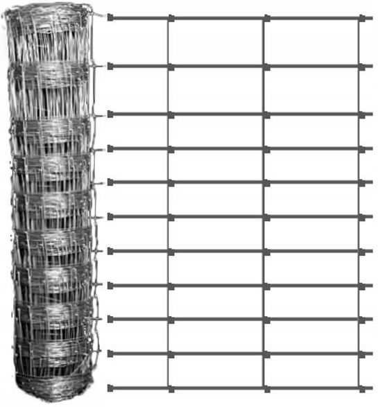 Siatka leśna ocynkowana - 100/11/30 - 50 metrów Parametry Wysokość: 1,0 m Długość: 50 m Odległość drutów pionowych: 30 cm Ilość drutów poziomych: 10 Rozstaw drutów poziomych: 10 x 10 cm Grubość drutów prowadzących: 2,0 ± 0,09 mm Grubość drutów środkowych: 1,6 ± 0,09 mm Warstwa ocynku na drucie: 80g/m2 Siatki leśne znajdują zastosowanie do ogradzania terenów leśnych, autostrad i trakcji kolejowych. Wykorzystuje się je również w rolnictwie , gdzie służą zabezpieczeniu pastwisk i wybiegów dla zwierząt oraz ochronie upraw rolniczych
