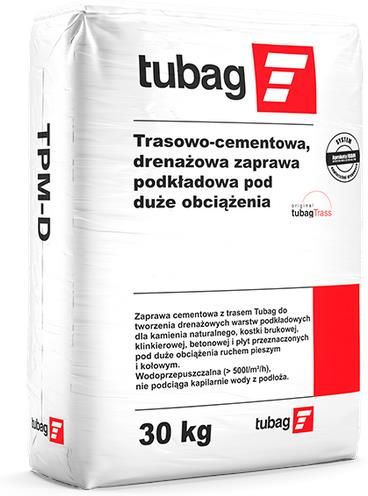 TUBAG TPM-D O produkcie zaprawa drenażowa do wykonywania warstw podkładowych pod tzw. nawierzchnie związane z podłożem układane z kostki brukowej, bruku klinkierowego, płyt kamiennych oraz betonowych zaprawa wodoprzepuszczalna nie podciąga kapilarnie wody, ogranicza szkody mrozowe pod ciągi piesze, nawierzchnie drogowe, parkingi, place manewrowe grubość warstwy wg zaleceń projektanta, min. 5 cm zużycie: ok. 18 kg/m² na 1 cm grubości