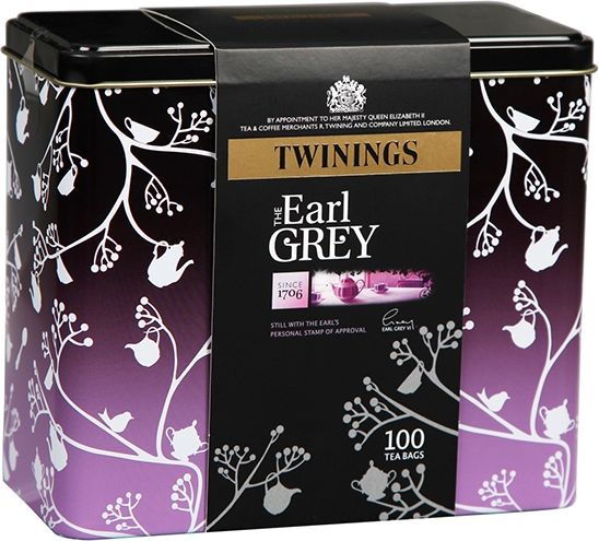 TWININGS Earl Grey 100 torebek 250gTwinings Earl Grey to jedna z najpopularniejszych herbat tej marki. Tradycyjna receptura znalazła się w rękach firmy Twinings za pośrednictwem hrabiego Charlesa Greya. Od tego czasu ten intensywny napar z cytrusową nutą zachwyca podniebienia ludzi na całym świecie. Cały sekret tkwi w dodatku olejku z bergamotki- słynnej odmiany pomarańczy. Herbata Earl Grey posiada niesamowity aromat, a jej zapach należy do jednych z najbardziej rozpoznawalnych na świecie. Składniki:herbata, olejek bergamotki (4%), naturalny olejek cytrynowy z innymi naturalnymi aromatami (1%).