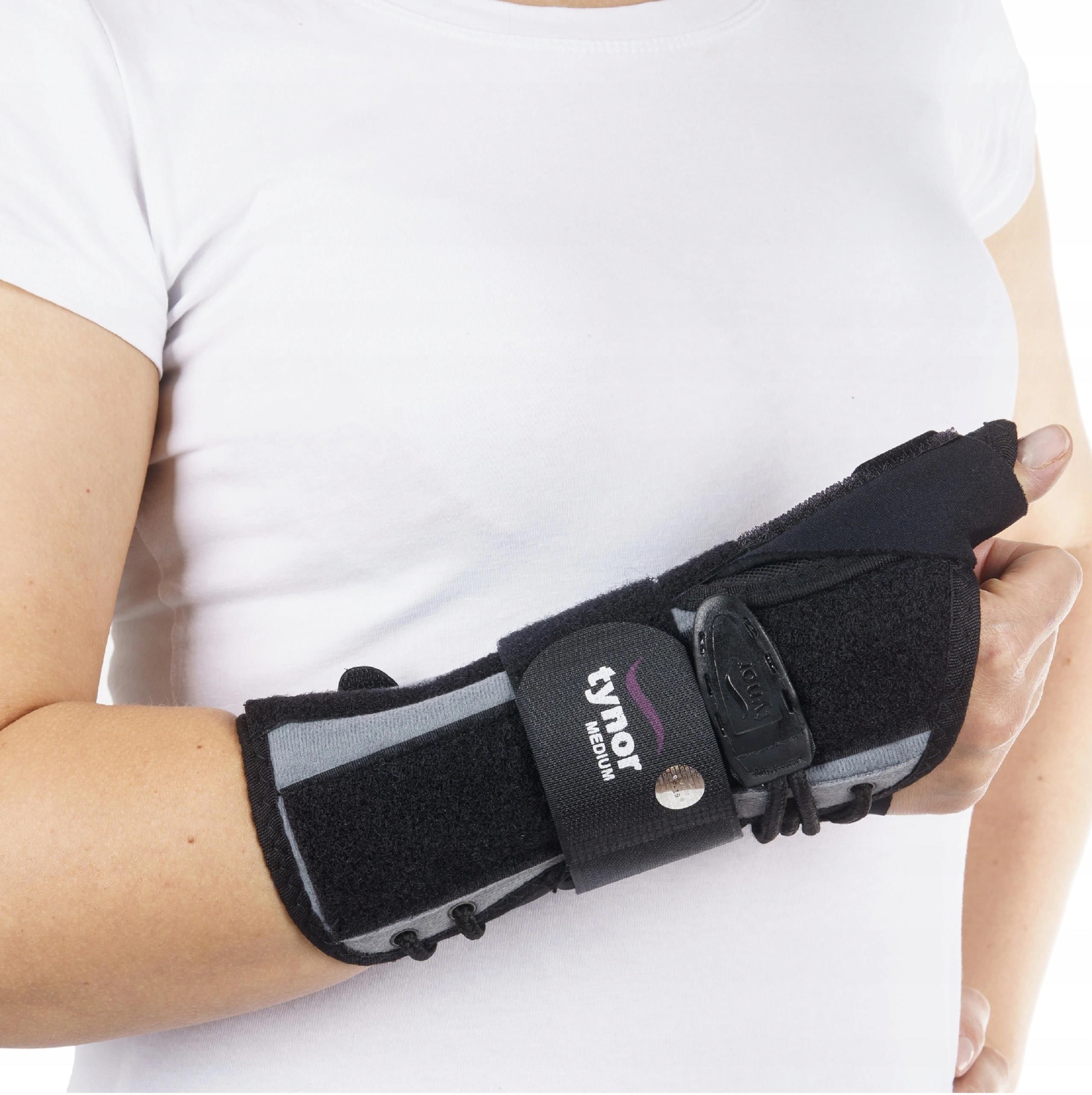 Stabilizator stawu nadgarstkowego posiada anatomicznie wyprofilowaną aluminiową szynę. Po wyjęciu szyny i włożeniu w inny schowek możemy ortezę zamienić z prawo ręcznej na lewo ręczną i odwrotnie, dwuręczność. Posiada ujęcie kciuka niezbędne przy wielu schorzeniach. Produkt jest łatwy w samodzielnej aplikacji. Zmiana kompresji następuje przez 3 pasy zapinane na rzepy, dwa boczne i centralny obwodowy. Struktura jest porowata co pozwala na utrzymanie stabilizatora w wyznaczonej pozycji. Całość jest bardzo wytrzymała i o bardzo wysokiej jakości wykonania. Oddychający i komfortowe wykończenie pozwala na długie użytkowanie ortezy. Zastosowanie: Zapalenia stawów i ścięgien, zespół cieśni nadgarstka Zespoły bólowe przeciążeniowe i zwyrodnieniowe, porażenia nerwów Skręcenia i zwichnięcia w obrębie stawów, zapalenia ścięgien Prewencyjnie i po ściągnięciu gipsu Zabiegi chirurgiczne i rehabilitacyjne Cechy: Kontrolowana, optymalna kompresja i dobra przyczepność Oddychający i odporny materiał, komfort użytkowania Wymienna profilowana aluminiowa szyna Anatomiczny otwór odprowadzający kciuk Łatwość samodzielnej aplikacji, uniwersalność Kontrolowane kompresji na pasach Anatomiczny otwarcie kciukiem Gwarancja bezpieczeństwa Marka Tynor jest uznanym na całym świecie producentem wyrobów medycznych. Po jej produkty chętnie sięgają lekarze i rehabilitanci, ponieważ wyróżniają się nie tylko wysoką jakością, ale także bezpieczeństwem dla zdrowia pacjenta. Prezentowana orteza nadgarstka spełnia wymogi normy ISO 9001 oraz ISO 13485, a także Światowej Organizacji Zdrowia określone dla tego rodzaju sprzętu. Posiada także certyfikat CE dla wyrobów medycznych klasy I. Użytkowany zgodnie z przeznaczeniem i według wskazań lekarza jest zatem w pełni bezpieczny dla zdrowia pacjenta. Rozmiar: obwód mierzony 15 cm powyżej nadgarstka S 18,3 - 21,6 cm M 21,6 - 24,9 cm L 24,9 - 28,2 cm XL 28,2 - 31,5 cm