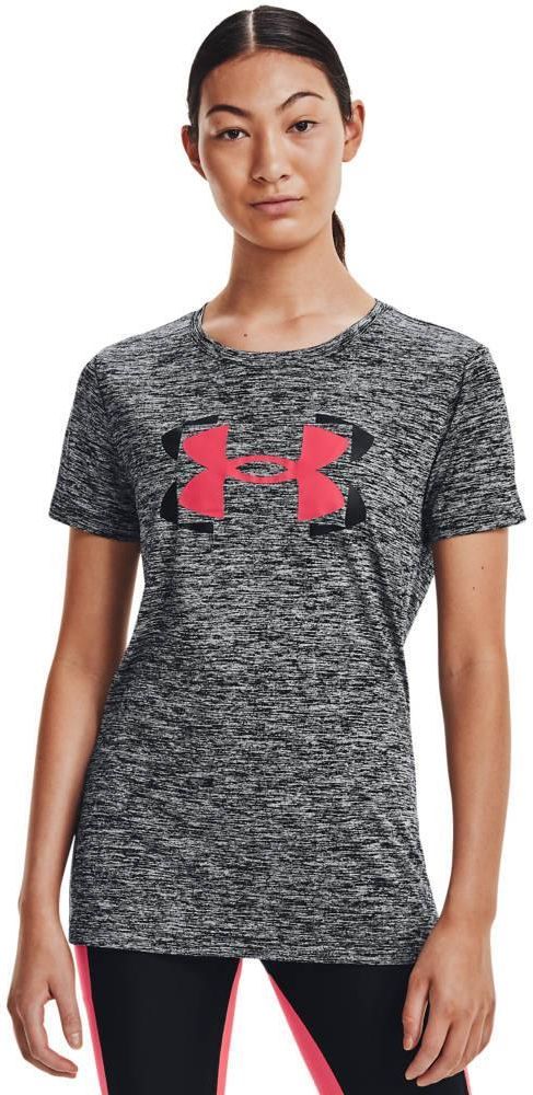 Koszulka damska Under Armour Tech Twist Graphic SSC szara 1366125 001 Koszulka dla kobiet Under Armour sprawdzi się podczas aktywności. Luźny krój. Lekka tkanina Tech™ z poliestrowych włókien pochodzących z recyklingu wspomaga odprowadzenie nadmiaru wilgoci do zewnętrznych warstw. Duże logo. Materiał: 100% poliester
