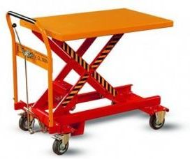 podnoszenie hydrauliczne pompą nożną,blokowanie jazdy hamulcami na kołach,bezstopniowa regulacja prędkości opuszczania Udźwig: 500kg Zakres podnoszenia: 275-810mm Wymiary platformy: 910*600 Masa: 81kg