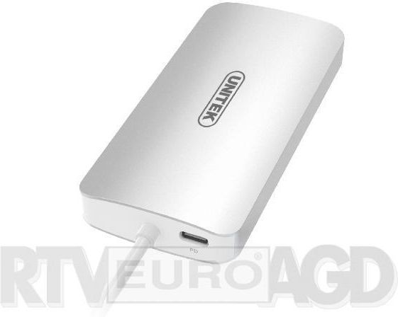 uHub Q4 Lite to replikator portów podłączany przez USB-C, który w swojej kompaktowej aluminiowej obudowie kryje dwa porty wideo: HDMI 2.0 i VGA z funkcją MST, dodatkowy port USB-A do transmisji danych i USB-C z Power Delivery 100W. Hub z PowerDelivery 100W Coraz mniejsze ultrabooki i laptopy często mają okrojoną liczbę portów. Dlatego marka Unitek stworzyła serię hubów z USB-C z najbardziej potrzebnymi funkcjami. Hub D1049A umożliwia podłączenie pendrive'a czy myszy przez typowy port USB-A, którego często brakuje w nowoczesnych komputerach. Hub nie blokuje możliwości ładowania dzięki technologii Power Delivery 100W zaimplementowanej w porcie USB-C. Przy użyciu odpowiedniej ładowarki i kabla ładowanie MacBook'a Pro 16" trwa o godzinę krócej niż przy fabrycznym zasilaczu. Praca i rozrywka na wielu ekranach Technologia MST (Muti-Stream Transport) umożliwia podłączenie dwóch wyświetlaczy do jednego wyjścia video i rozszerzenie pulpitu natrzy ekrany (dla systemu Windows). To duże udogodnienie podczas pracy w programach graficznych, prezentacji na konferencjach czy oglądaniu filmów ze smartphone'a. Maksymalna rozdzielczość dla HDMI to 4K przy próbkowaniu 60 Hz, a dla portu VGA FullHD (1080p). Podczas używania dwóch ekranów rozdzielczość dla obu jest ograniczona do maksymalnej rozdzielczości mniejszego z nich. Żeby skorzystać z tej funkcji port USB-C musi obsługiwaćDisplayPort Alt Mode. Solidne wykonanie Hub jest zabezpieczony solidną metalową obudową, przez co ładnie wygląda i jest bardzo trwały. To idealny kompan podróży - dzięki kompaktowym wymiarom (Lite) nie zajmuje dużo miejsca w bagażu. Jakość gwarantowana Unitek jest pewien jakości swoich produktów, dlatego wszystkie urządzenia w Polsce są objęte dożywotnią gwarancją dystrybutora. Oznacza to, że w przypadku ewentualnych problemów technicznych, możesz odesłać sprzęt do serwisu za pomocą pobliskiego paczkomatu. Odwiedź lokalną stronę marki Unitek, żeby dowiedzieć się więcej lub uzyskać pomoc techniczną. Najważniejsze cechy: Podłączany przez USB-C lub Thunderbolt 3 Zasilanie PowerDelivery 100W (ostateczna moc zależy od zasilacza; przykładowo 85W z zasilaczem 96W; 76W z 87W) MST - rozszerzenie pulpitu komputera o dwa dodatkowe ekrany 1080p HDMI 2.0 - dźwięk Dolby True HD, 4K@60Hz, 2K@120Hz, HDR Port USB 2.0 typu A Gwarancja: Ograniczona dożywotnia D2D 2 lata od zakończenia sprzedażySpecyfikacja Standard USB USB 5Gbps Standard Video HDMI 2.0 Złącze 2 Port USB-A, Port HDMI, Port USB-C (zasilanie), Port VGA Złącze 1 Wtyk USB-C Ilość portów HDMI 1 szt Ilość portów USB-A 1 szt Maksymalna rozdzielczość 4K Maksymalne natężenie na wyjściu 5 A Moc (W) 100 W Dla urządzeń iPad, Laptop, Smartphone, MacBook, MacBook Pro, Tablet, Mac Pro, Komputer stacjonarny Rodzaj urządzenia Hub Zastosowanie Zasilanie / ładowanie, Transfer danych, Audio / Video Współpraca z systemami Windows, MacOS, iOS, Linux, Android Długość przewodu 0.15 m Wysokość 1.4 cm Szerokość 4.4 cm Głębokość 5.7 cm Waga 0.074 kg