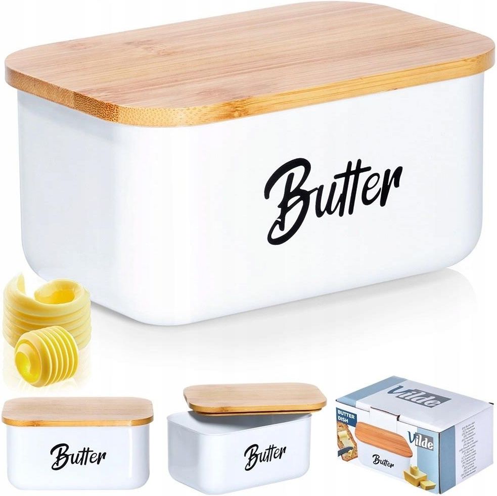 Vilde Maselniczka Stalowa Biała Z Bambusową Pokrywką Do Masła 15 X10 X7,5cm Kraków