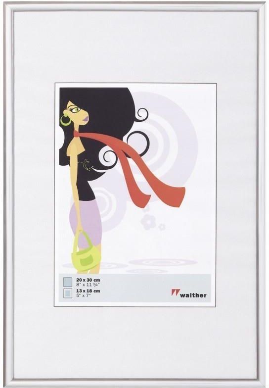 Ramka plastikowa Walther NEW LIFESTYLE 20x30 cm srebrna, modna ramka plastikowa o profilu blokowymRozmiar ramki 20x30 cmSrebrny pasek w profilu blokowymMyte przezroczyste szkłoUrządzenie do zawieszania w uchwycie obrotowymDołączona wkładka papierowaPlastikowa ramka Walther NEW LIFESTYLE w rozmiarze 20x30 cm zachwyca nowoczesnym designem i prostą elegancją. Srebrny pasek w profilu blokowym tworzy modny wygląd, który doskonale komponuje się z różnymi stylami wyposażenia. Płukane, przezroczyste szkło zapewnia przejrzystą i ochronną osłonę dla zdjęcia.Wyposażona w praktyczną papierową wkładkę, ramka może być używana natychmiast. Obrotowy klips z tyłu umożliwia łatwe i bezpieczne zawieszenie. Wytrzymały tylny panel z twardego włókna zapewnia pewny chwyt. Idealna dla każdego, kto szuka stylowego, ale niedrogiego rozwiązania do oprawiania zdjęć. Walther New Lifestyle - Ramka na zdjęcia - Przeznaczona do: 5x7 cali (13x18 cm) - plastikowa - prostokątna