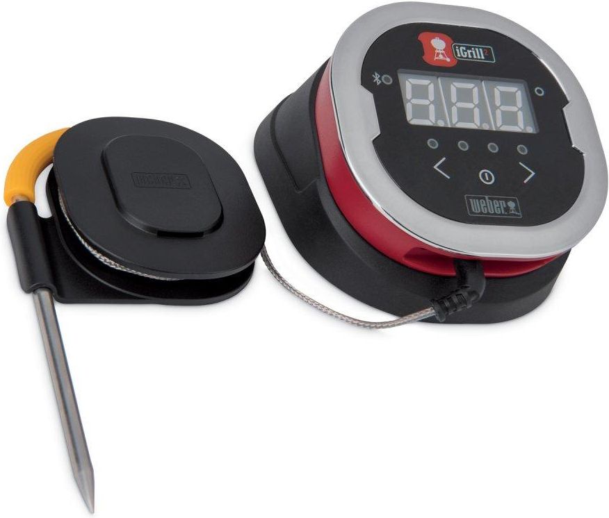 Nowe technologie w klasycznym podejściu do grillowania... Termometr na cztery sondy łączący się ze smartfonem (iOS i Android) za pomocą bluetooth przesyłając w czasie rzeczywistym dokładną temperaturę. Aplikacja zawiera szereg ustawień takich jak wybór potrawy, gotowe przepisy czy możliwość łączenia się ze społecznością entuzjastów kulinarnych. Idealnie nadaje się do pieczeni, steków czy ryb i nie ma znaczenia czy potrawa jest przyrządzana w grillu, piekarniku lub na patelni. Temperatura jest wyświetlana na wbudowanym wyświetlaczu jak również w aplikacji z możliwością gotowania, smażenia czy grillowania czterech różnych potraw i kontrolowania temperatury w każdej z nich niezależnie. Obudowa nadajnika ma wbudowany magnes co ułatwia przechowywanie urządzenia. Zainstalowane dwie baterie AA wystarczy na 200 godzin pracy a wbudowane podświetlenie typu Smart-LED informuje użytkownika o statusie połączeniu lub stanie baterii. Długość sondy to 117 cm a maksymalna temperatura pracy do 380 st. C. W zestawie są dwie sondy a urządzenie można wyposażyć w maksymalnie cztery.