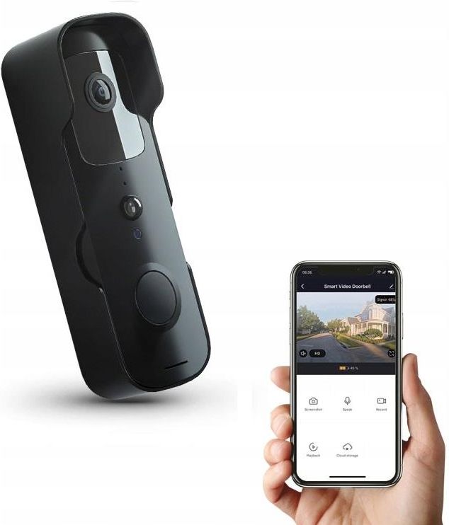 WIDEODOMOFON WIFI DOMOFON Z KAMERĄ FULL HD Profesjonalny wideodomofon działający z aplikacją TuyaSmart w języku polskim. WODOODPORNOŚĆ IP53 Wideodomofon w porównaniu do innych modeli jest wodoodporny, klasa wodoodporności IP53. Już nie musisz się martwić o to, czy po deszczu będzie on nadal działał! ZOBACZ SWOICH GOŚCI I ROZMAWIAJ Z NIMI Wbudowany mikrofon oraz kamera sprawia, że możesz zobaczyć, słuchać i komunikować się przy użyciu aplikacji. Możesz w ten sposób witać się ze swoimi gośćmi oraz rozmawiać z najbliższymi. MIEJ OCZY DOOKOŁA GŁOWY – WSZĘDZIE GDZIE CHCESZ! Wysokiej jakości obraz pozwoli Ci z łatwością ujrzeć wszystko to, co dzieje się przed Twoimi drzwiami. Kamera świetnie nadaje się do monitoringu oraz komunikacji będąc w samochodzie, w pracy, na ulicy, na wakacjach itp. ZACHOWAJ PEŁNĄ KONTROLĘ ZA SPRAWĄ SWOJEGO TELEFONU Wideodomofon ma możliwość wysłania wiadomości alarmowej prosto na Twojego smartfona i dodatkowo zachowuje dane o aktywności odwiedzającego w pamięci telefonu, dzięki czemu możesz do nich powrócić później. DETEKTOR RUCHU ORAZ ROZPOZNAWANIE LUDZI Otrzymasz powiadomienie w swojej aplikacji, jak tylko kamera wykryje podejrzany ruch. Wideodomofon inteligentnie rozpoznaje ludzi, dzięki czemu nie otrzymasz fałszywego alarmu. ŚWIETNY OBRAZ ZA DNIA I NOCĄ Wideodomofon działa w wysokiej rozdzielczości FULL HD, a obraz w nocy widoczny jest w wysokiej jakości dzięki diodom na podczerwień POŁĄCZENIE Z WIFI Wideodomofon łączy się bez problemu z domowym WiFi, dzięki czemu uzyskasz dostęp do jego obrazu gdziekolwiek jesteś. Korzystając z wygodnej aplikacji TuyaSmart w języku polskim, dostępnej na iOS i Android, masz możliwość podglądu z kamery w czasie rzeczywistym. ZASIĘG I KOMUNIKACJA W CAŁYM DOMU Dzięki połączeniu Wifi szybko przywitasz i powiadomisz gości, gdziekolwiek będziesz w domu. Aplikacja umożliwia połączenie z wideodomofonem przez kilka osób jednocześnie. Obiektyw Mikrofon Kontrolka Czujnik ruchu Dioda podczerwieni Przycisk dzwonienia Głośnik Otwór montażowy Cechy i specyfikacja: Wideodomofon Sensor: 1/3 CMOS 2.0mpx Detekcja ruchu: tak Powiadomienia alarmowe : tak Wysoka rozdzielczość: 1920*1080 (Full HD) Kąt widzenia: 150° Zasilanie wideodomofonu: 2xAkumulator typu18650 Działanie na akumulatorach: nawet do 3 miesięcy! Działanie na podczerwień: Tak Wbudowany mikrofon i głośnik - dwustronny przesył audio Wsparcie WiFi: 2,4GHz Wodoodporność: Tak, IP53 Kompresja wideo: H.264 Wsparcie dla kart micro SD do 64GB (brak w zestawie) Temperatura pracy: od -10° do 50° Celsjusza Aplikacja: TuyaSmart (IOS oraz Android) w języku polskim Wymiary: 14,5 x 3,3 x 5,0 cm Kolor: czarny W zestawie: Wideodomofon Oryginalne pudełko Instrukcja obsługi 2x baterie typu 18650 gratis Zestaw montażowy Na naszych aukcjach dostępny kolor czarny oraz biały