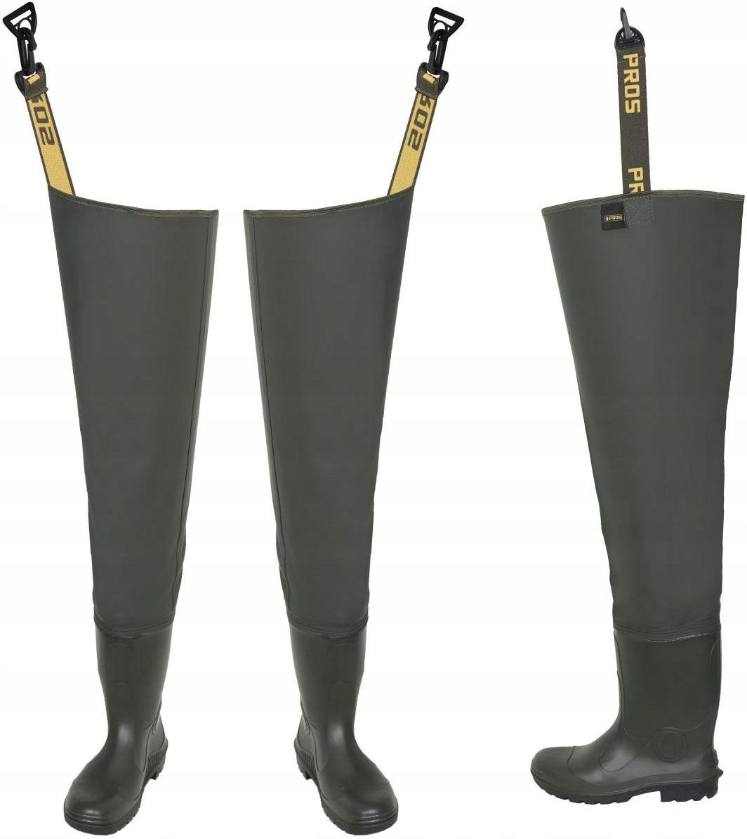 Wodery Na Szelkach Mocne Rybackie 302 mm roz 46 Witam serdecznie na naszej aukcji. Przedmiotem aukcji są oryginalne Wodery PROS w kolorze zielonym. Wodoodporne dla wędkarzy i nie tylko. Mocne i przede wszystkim szczelne. U nas dostajecie Państwo Gwarancje na szczelność produktu. Opis producenta: Wodery wodoochronne z wgrzanymi na stałe wysokiej jakości kaloszami. Model produkowany z wodoochronnej, wytrzymałej tkaniny Plavitex Heavy Duty. Przeznaczony szczególnie dla wędkarzy i rybaków do użytku przy wszelkich pracach rybackich. Zapewniają skuteczną ochronę nóg przed wodą. Technika obustronnego zgrzewania zwiększa wytrzymałość szwów. Nasz Opis: Wodery sprawdzone w różnych warunkach, wygodne i wytrzymałe, pozwalające przebywać cały dzień w wodzie bez obawy przecieknięcia. Produkt wykonany z tkaniny Plavitex która w dotyku ma podobną strukturę do gumy, są one jednak bardziej elastyczne niż guma. Kalosze użyte do tego produktu są elastyczne i dopasowują się do stopy. Waga produktu to w zależności od rozmiaru od 2,5 do 3,5kg. Produkt Polecany przez wędkarzy i gospodarstwa Rybackie. Na tej aukcji sprzedajemy kolor zielony, ale w naszej ofercie znajdziecie Państwo również kolor czarny, umieszczony na innych naszych aukcjach. Towar jest oryginalny, wysyłany wraz z oryginalnym opakowaniem. Rodzaj materiału: Plavitex Heavy Duty Gramatura materiału: 680 gram/m² Grubość materiału: 0,68 mm PLAVITEX HEAVY DUTY - tkanina na podkładzie poliestrowym, jednostronnie powlekana PVC. Charakteryzuje się zwiększoną odpornością na rozdzieranie i wodoszczelnością szwów. Skład chemiczny powleczenia gwarantuje wyjątkową odporność tkaniny na niekorzystne warunki atmosferyczne oraz zginanie przy temperaturach do -50° C. Materiał spełnia wymogi normy EN 343, co potwierdzono w badaniach przeprowadzonych przez akredytowany instytut badań materiałów włókienniczych. Poniższe zdjęcia przedstawiają sprzedawany produkt. Przy woderach wybieramy tylko rozmiar kalosza, a reszta jest przypasowana do niego. Wymiary woderów: Długość wewnętrzna z butem: 90 cm Długość zewnętrzna z butem: 94 cm Obwód nogawki: 78 cm Wymiar kalosza: Długość wkładki: 30,2 cm Stan: Nowy Waga (z opakowaniem): 3.00 Rozmiar: 46 Długość wkładki: 30.20