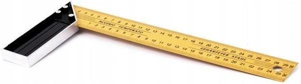 Kątownik stolarski 350mm. Kątownik przeznaczony do wymierzania idealnego kąta prostego podczas prac stolarskich, budowlanych pomiarowych. Nadaje się zarówno do profesjonalnych warsztatów jak i do użytku domowego. Posiada czytelną miarkę metryczną. Kątownik posiada aluminiową stopką, ramię wykonane z blachy lakierowanej na żółto z naniesioną czytelną, czarną podziałką milimetrową.