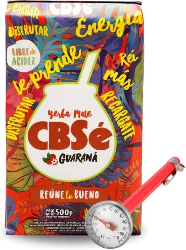1.Yerba Mate Cbse Energia Guarana 500g 0,5kg Pobudzająca argentyńska yerba mate Cbse Guarana to genialne połączenie ostrokrzewu paragwajskiego z miętą, werbeną cytrynową i z ekstraktem z guarany. Świetny wybór dla uczniów, studentów i osób, które narażone są na duży wysiłek psychiczny i fizyczny, oczywiście nie pomijając smakoszy yerby. 2.Termometr Analogowy do Yerba Mate To specjalistyczne narzędzie używane do mierzenia temperatury wody przeznaczonej do przygotowywania yerba mate. Stosowanie termometru jest rekomendowane dla osób ceniących sobie jakość i smak naparu, oraz dla tych, którzy chcą uniknąć gorzkiego posmaku w yerba mate.